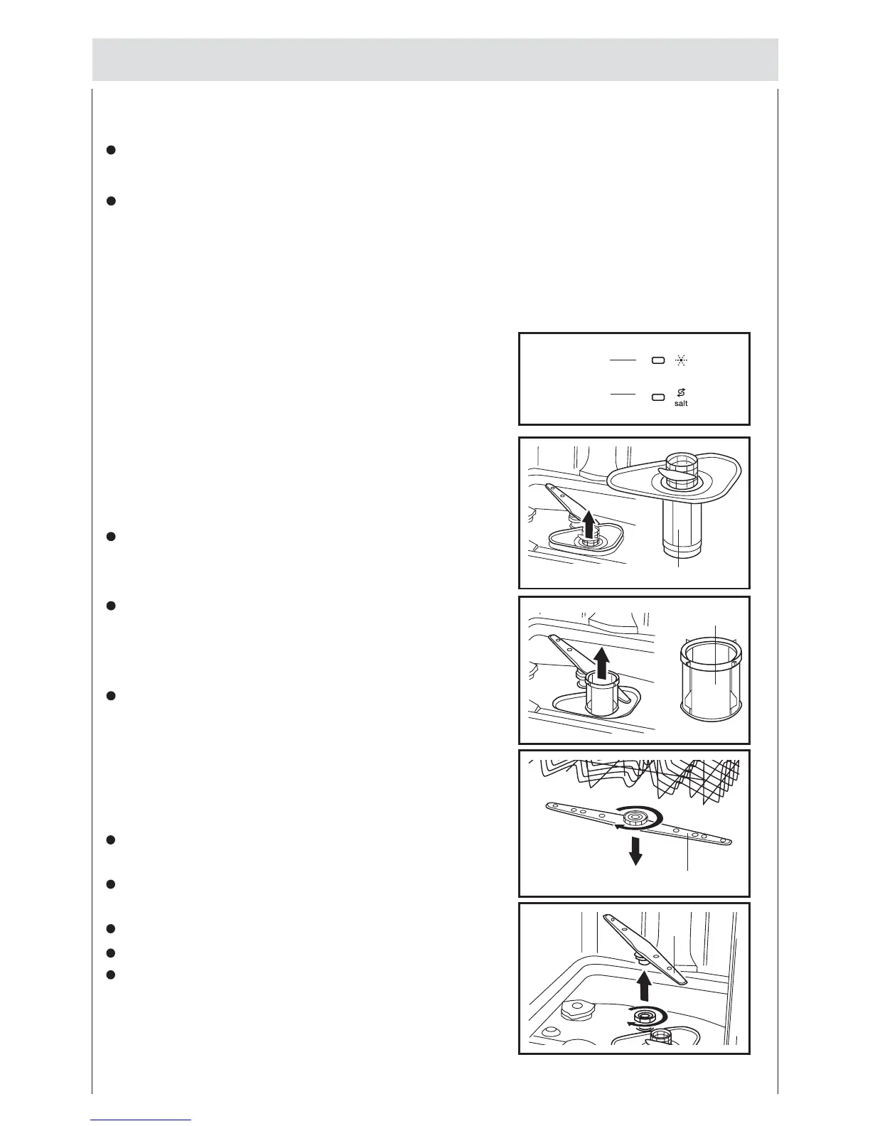 Check that no grease or scale has accumulated on the inside of the dishwasher.