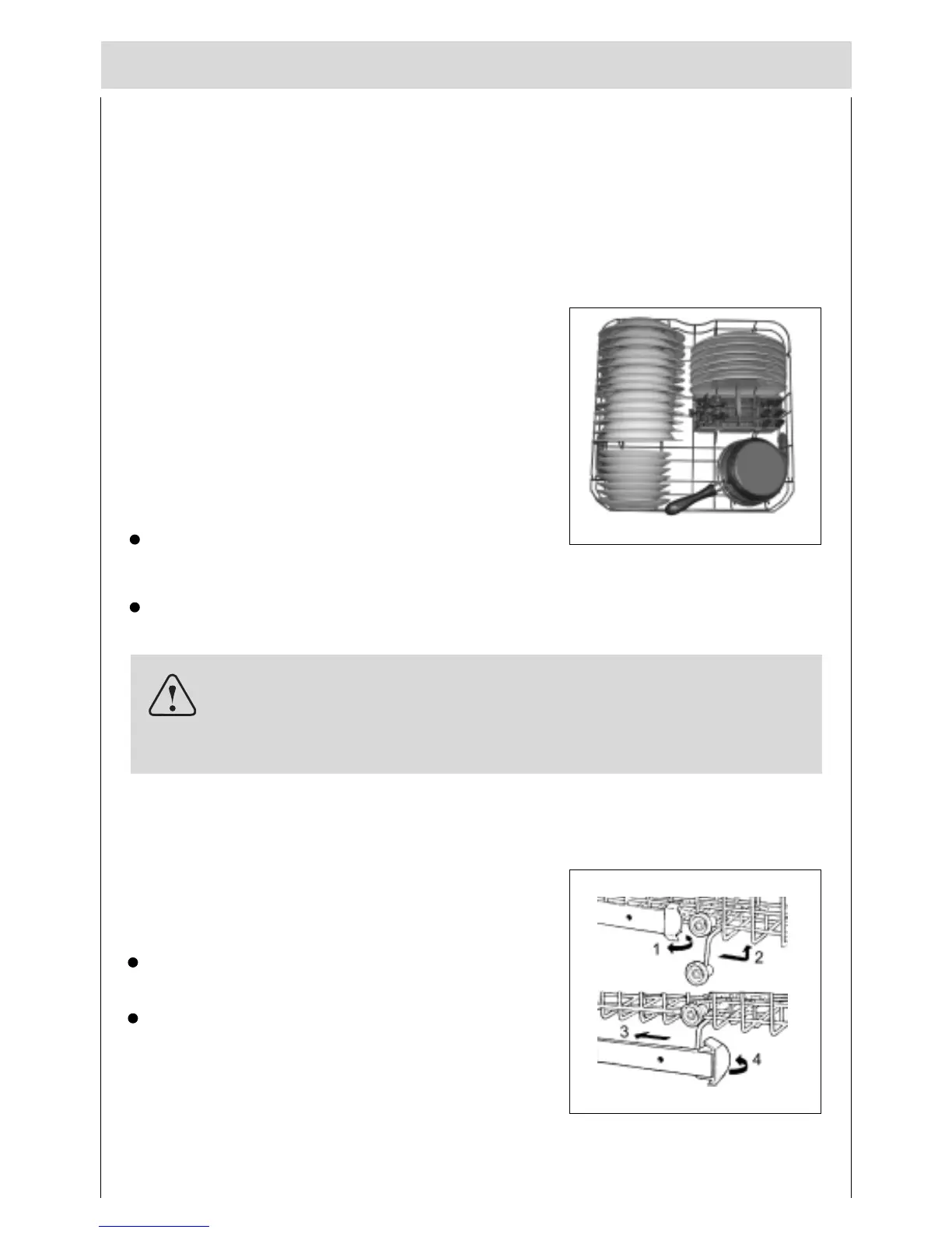 Before placing the dishes in the dishwasher, remove larger food particles to prevent the filter from be-