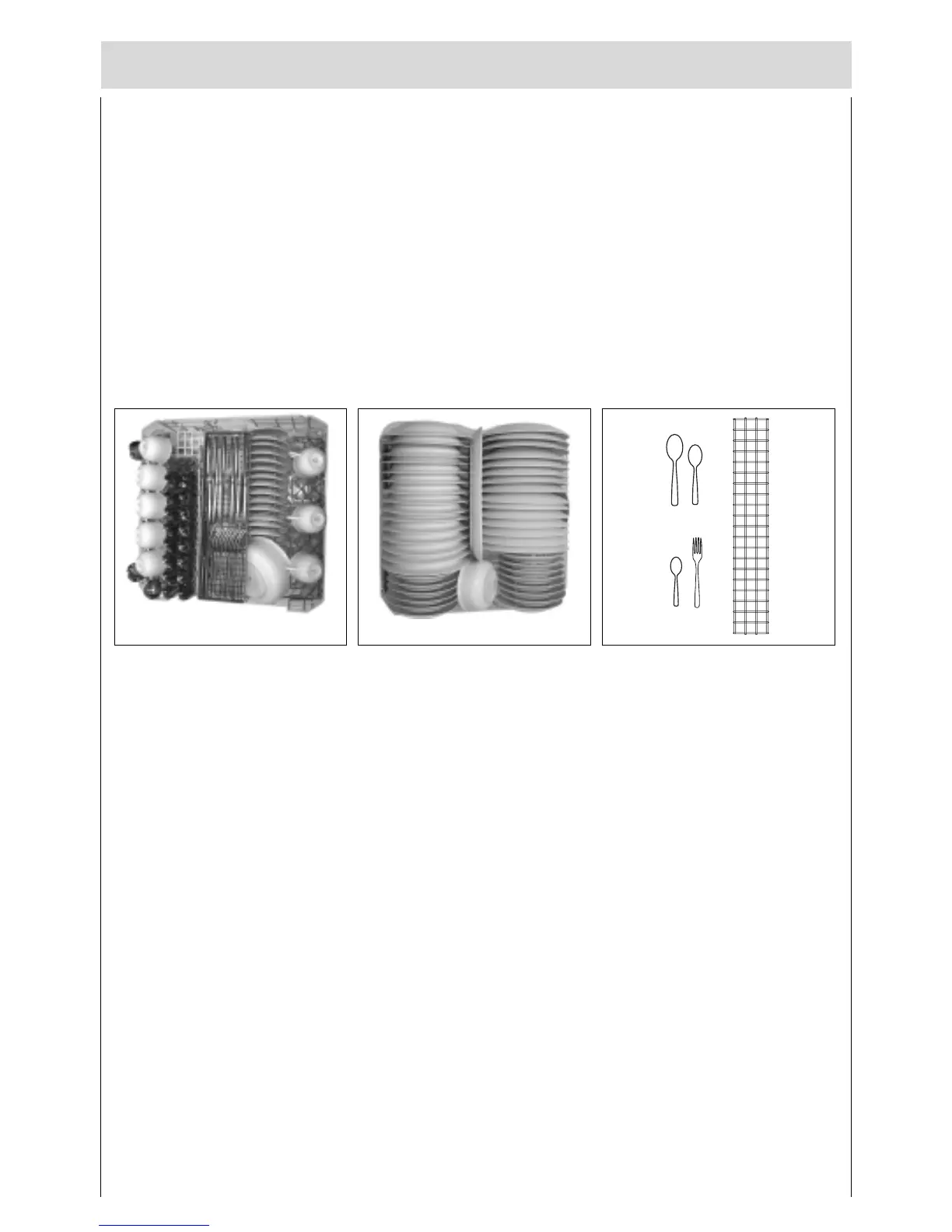 Example of loaded dishwasher: See Fig 1 , 2 and 3.