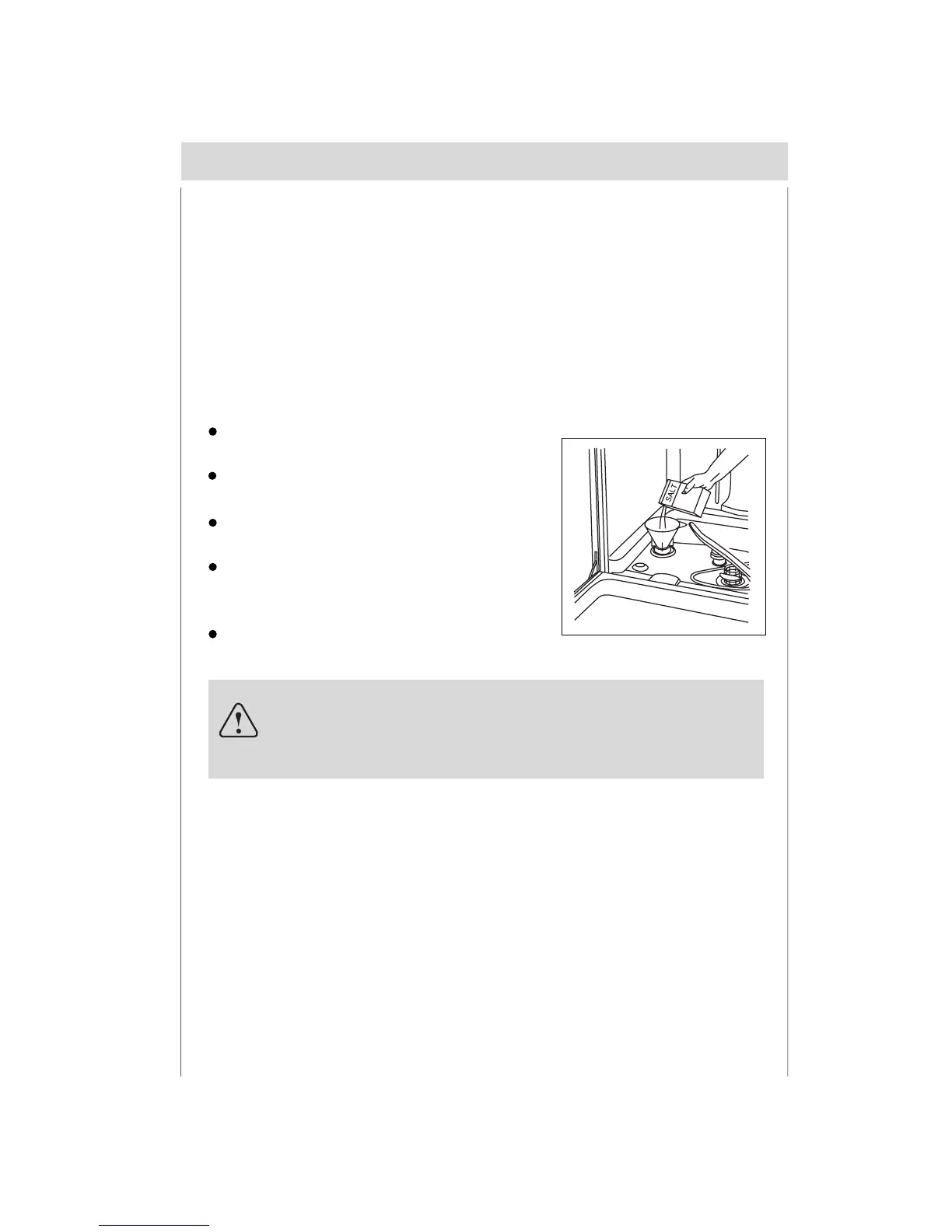 The salt container is located beneath the lower rack and should be filled as follows: