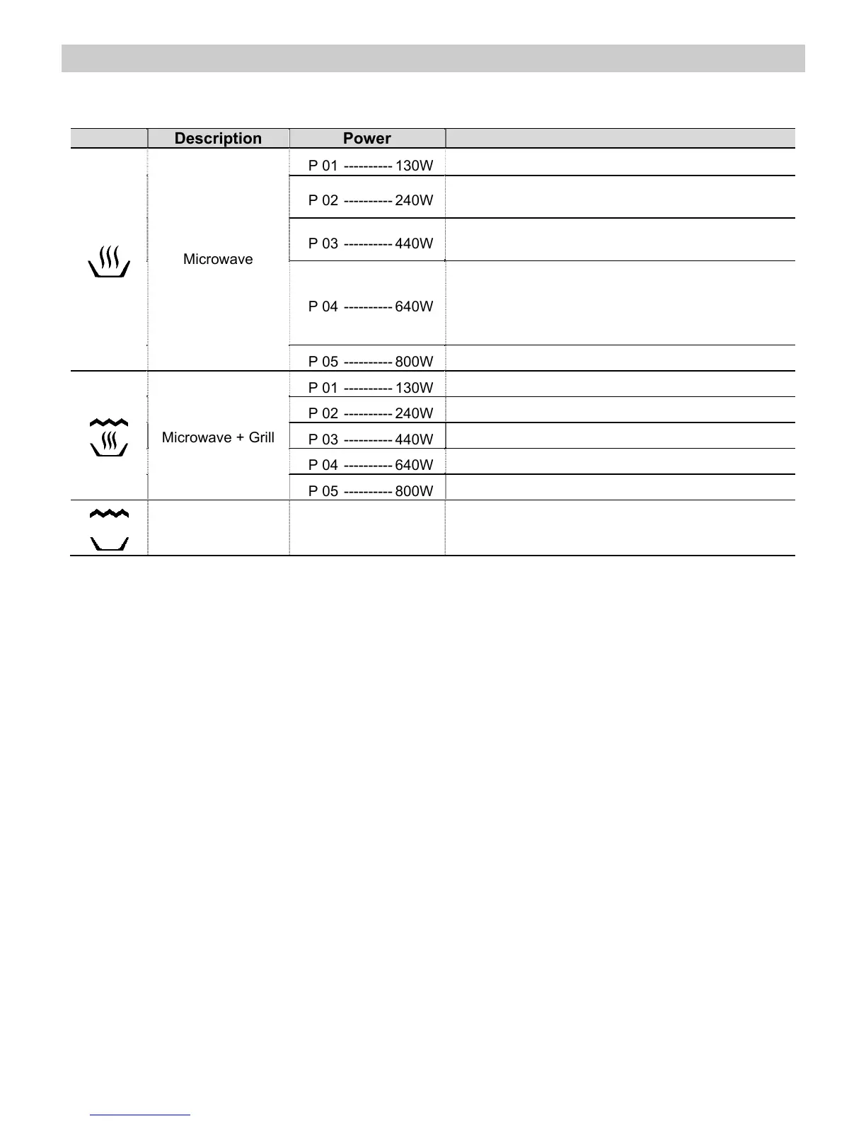 • Grill power. ................................................................................................. 1000 W