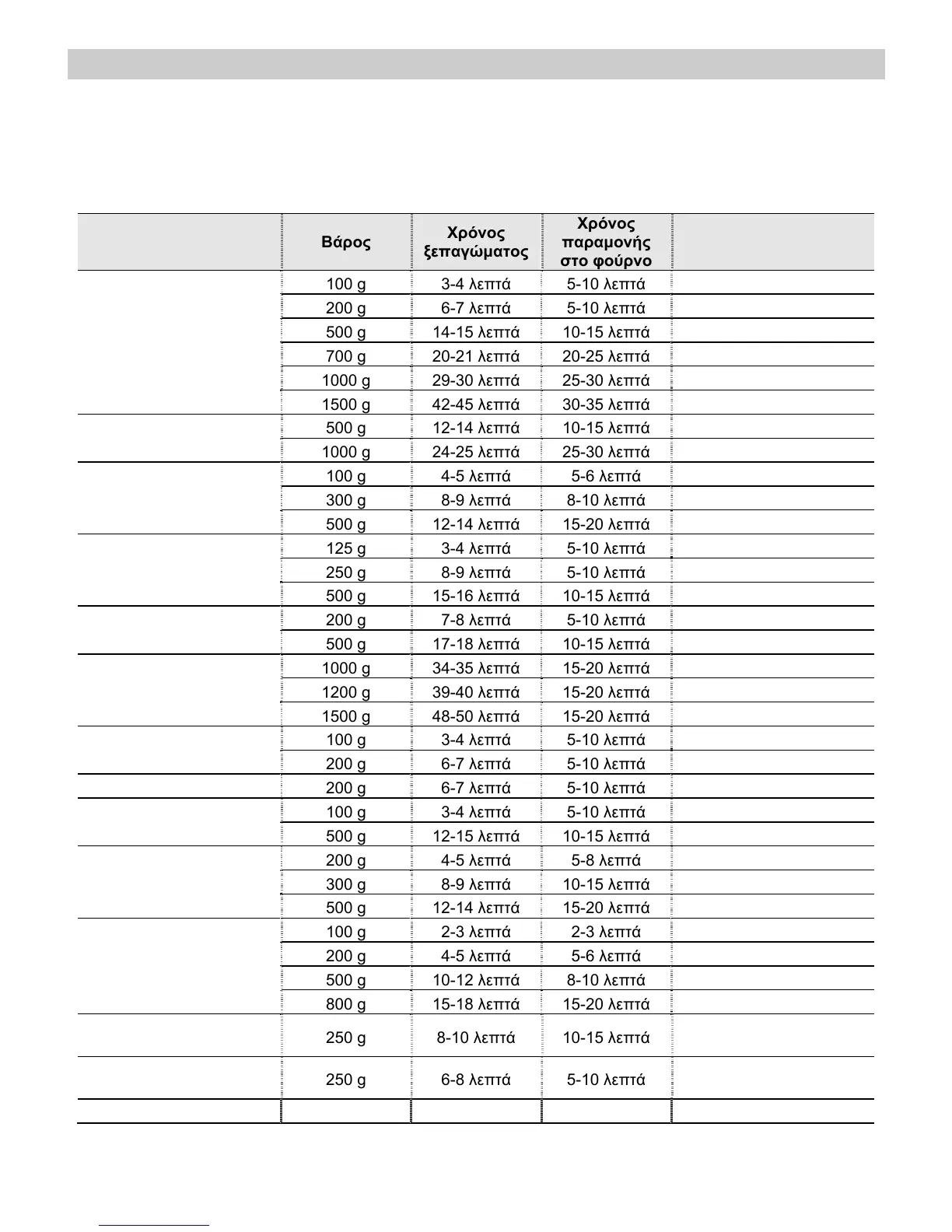 100 g 3-4 λεπτά 5-10 λεπτά Γυρίστε 1 φορά