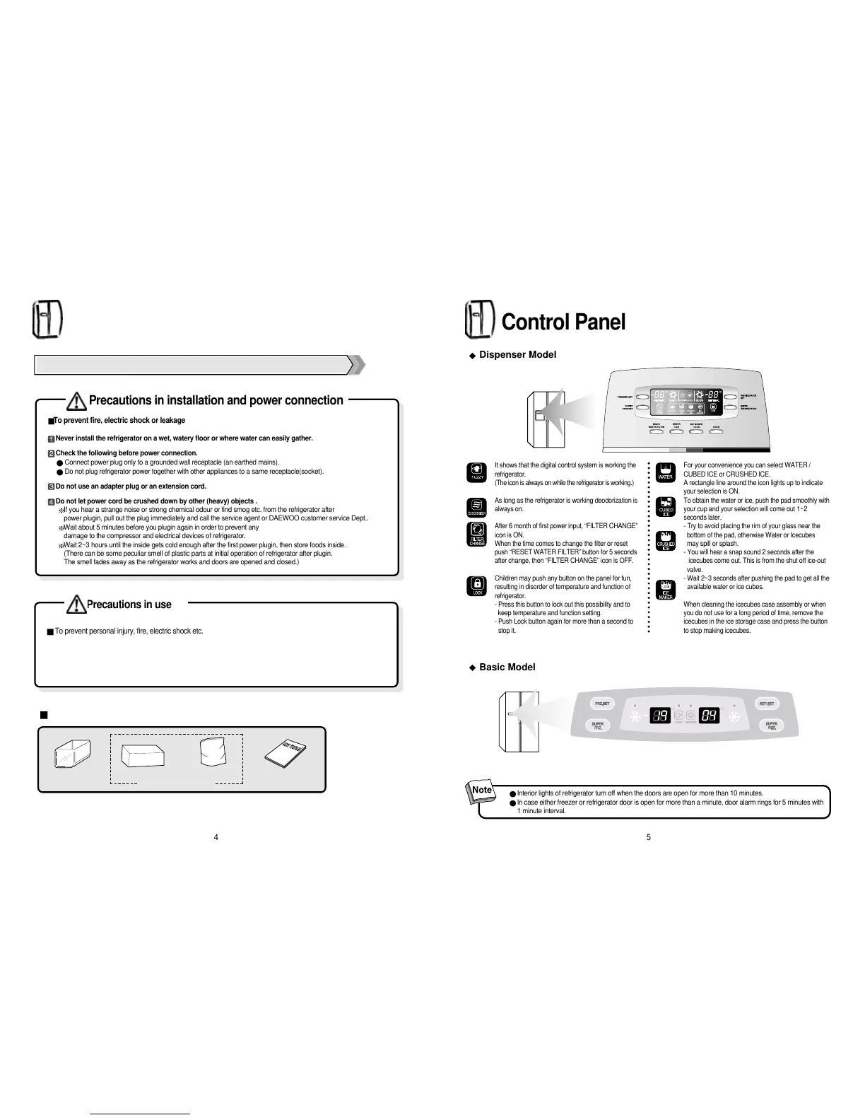 In case either freezer or refrigerator door is open for more than a minute, door alarm rings for 5 minutes with