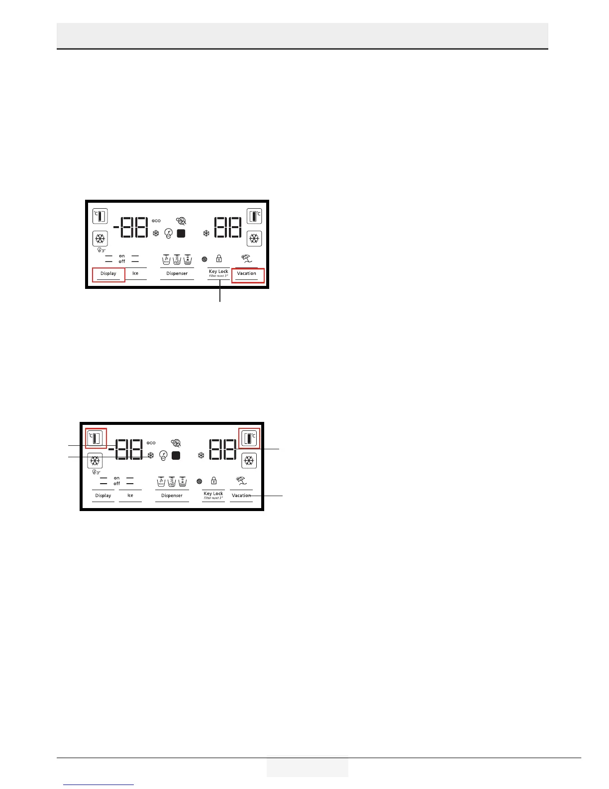 frigorífico, premir e manter premido os botões de