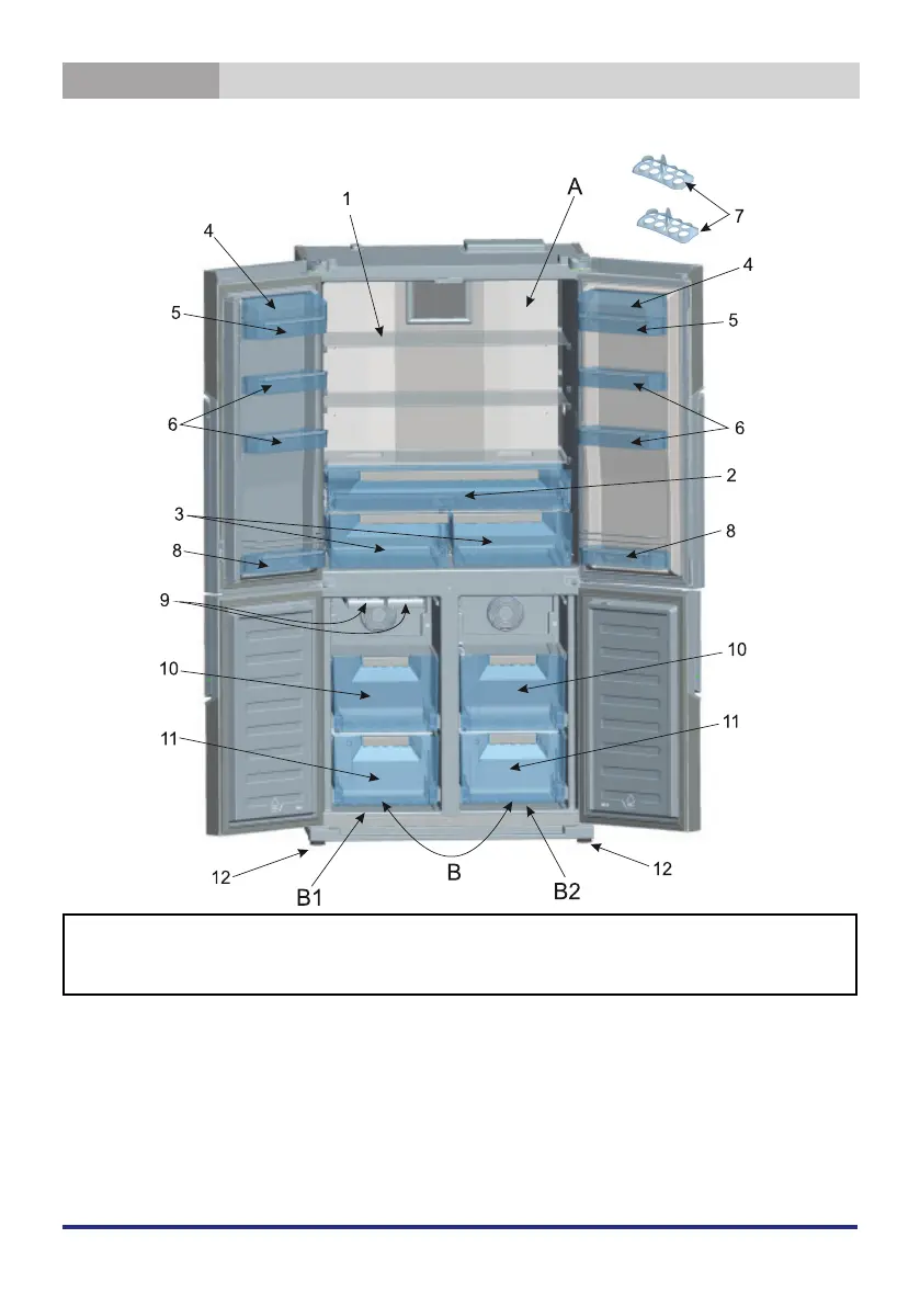 B) Kühlfach / Gefrierfach