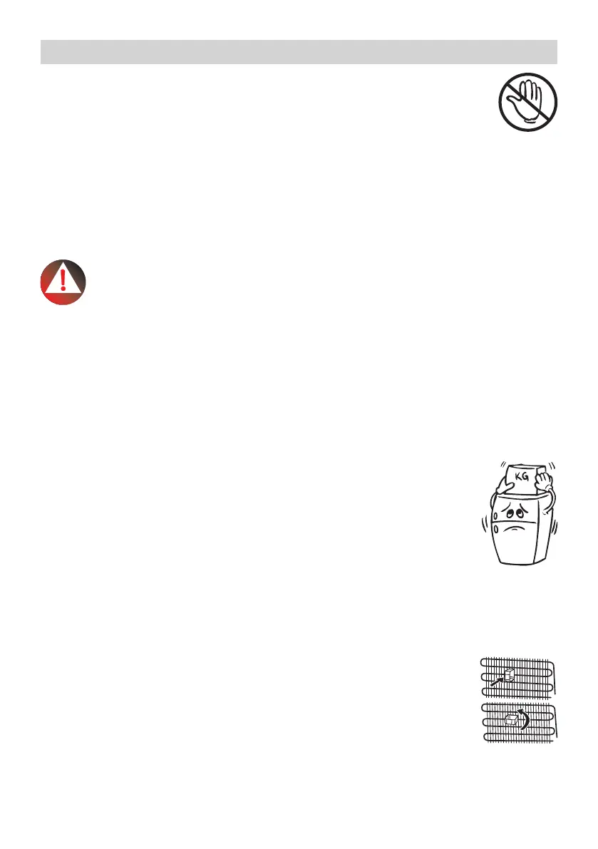 • Do not place anything on your fridge, and install your fridge in a suitable