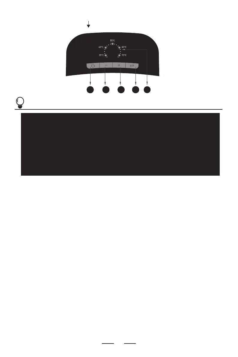 “ECO”. Pulse “-,+”; la luz indicadora de la temperatura actual se apaga y