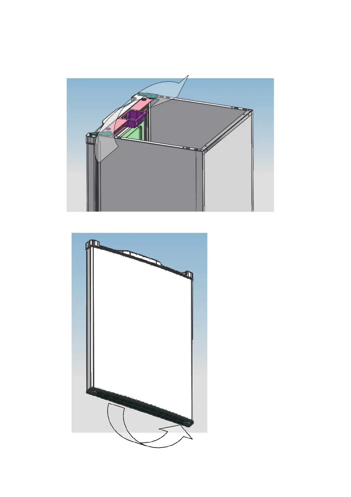 3. Cambie al lado contrario la bisagra, su guía y el tope de la puerta