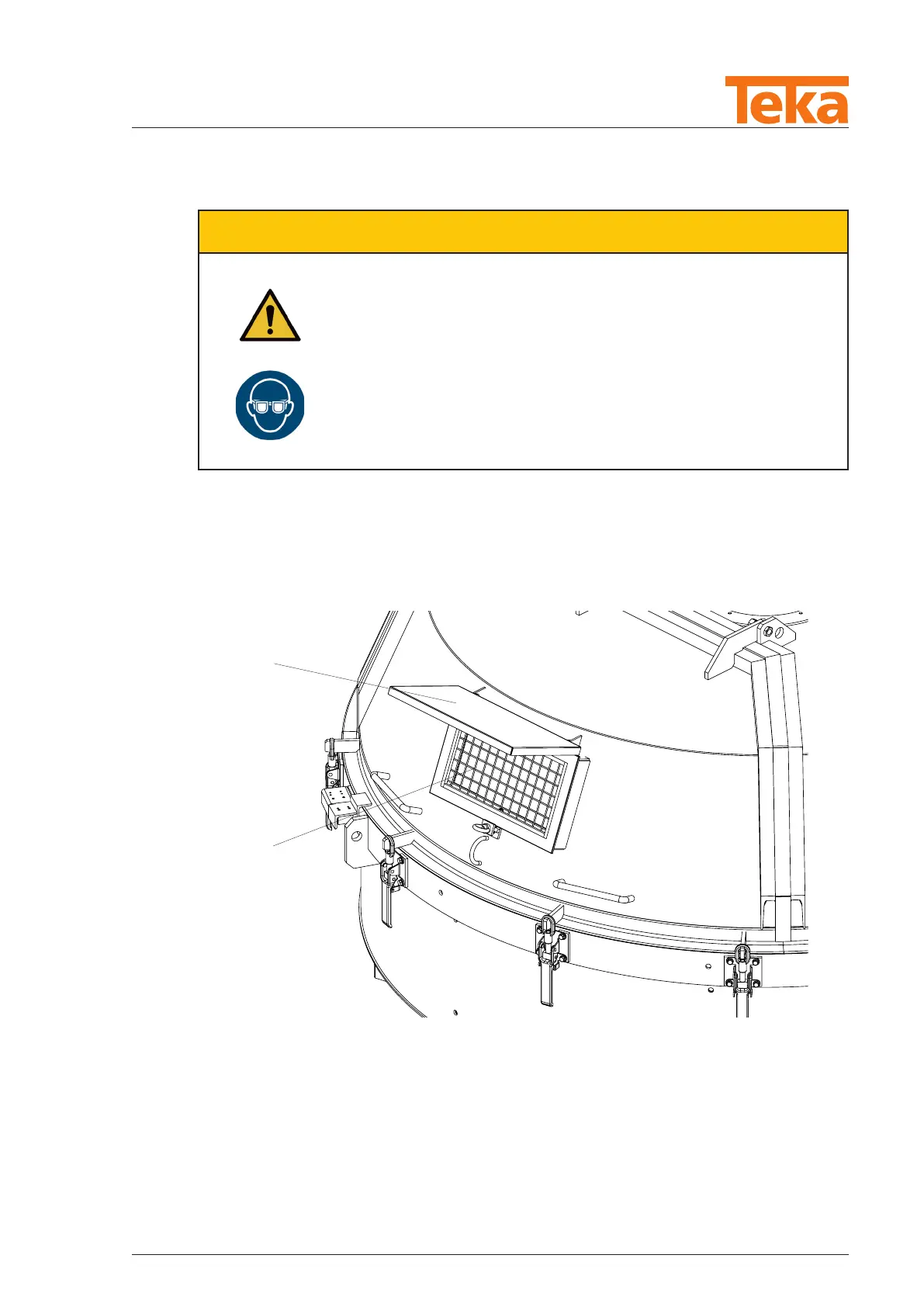 You are prevented from reaching into the machine by a screwed-down protective grille (2) that