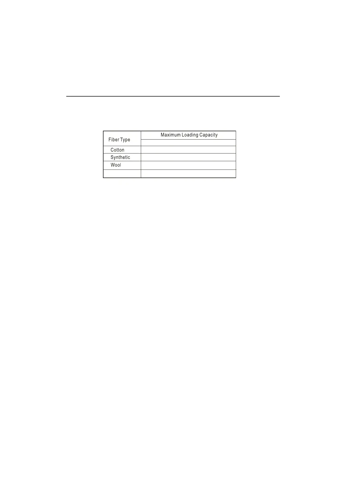 the maximum affordable washing quantity according to the following table.