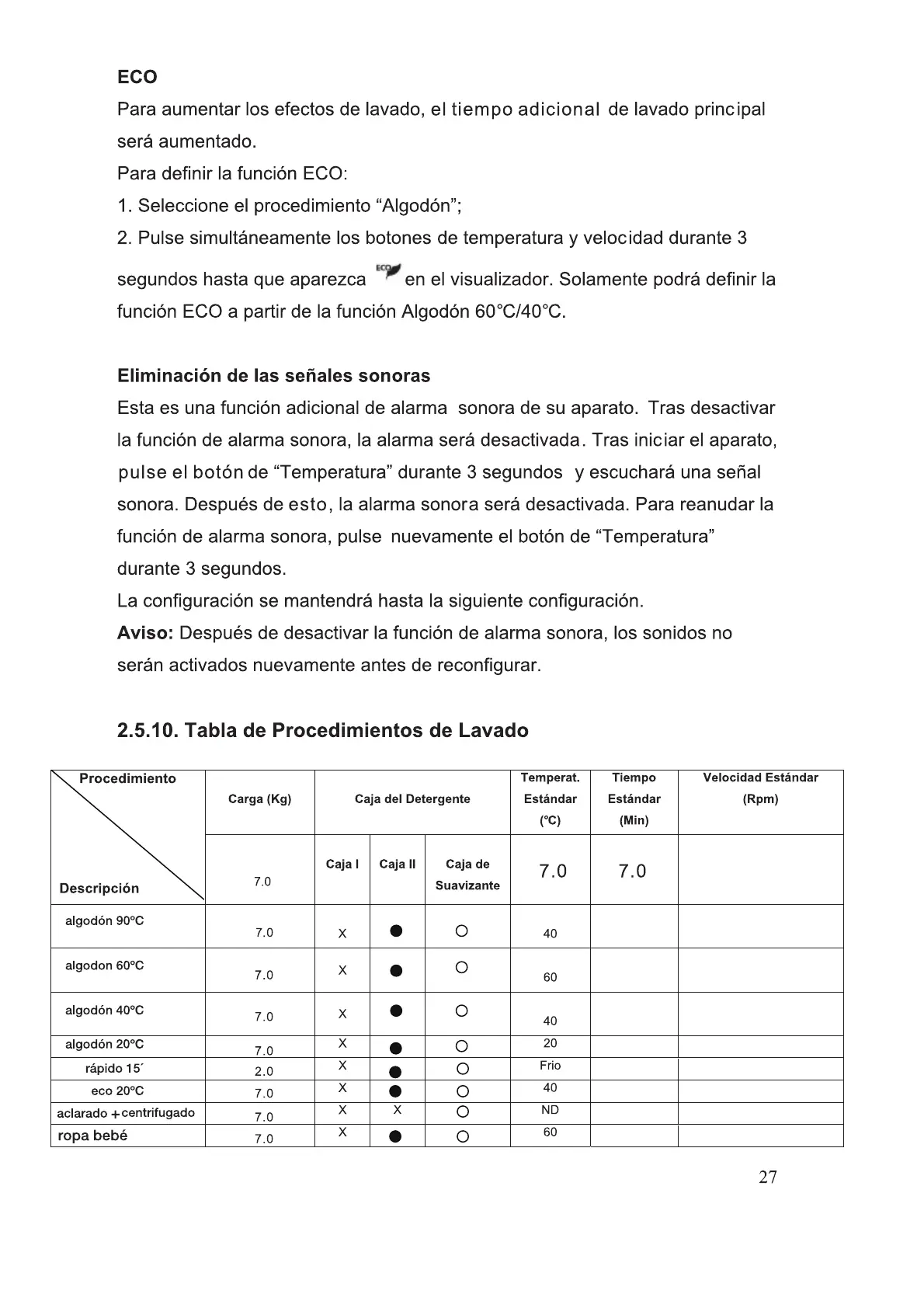 Teka TK4 1070 - Tabla de Programas de Lavado