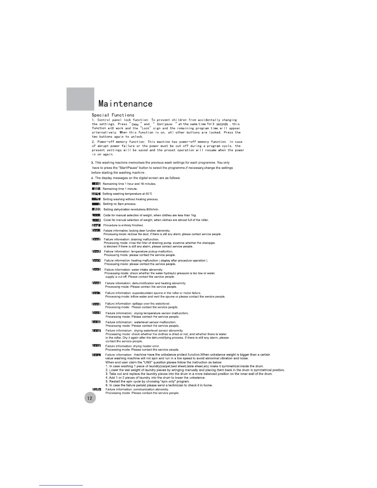 Teka TKE - Maintenance; Special Functions; Error Code Explanations
