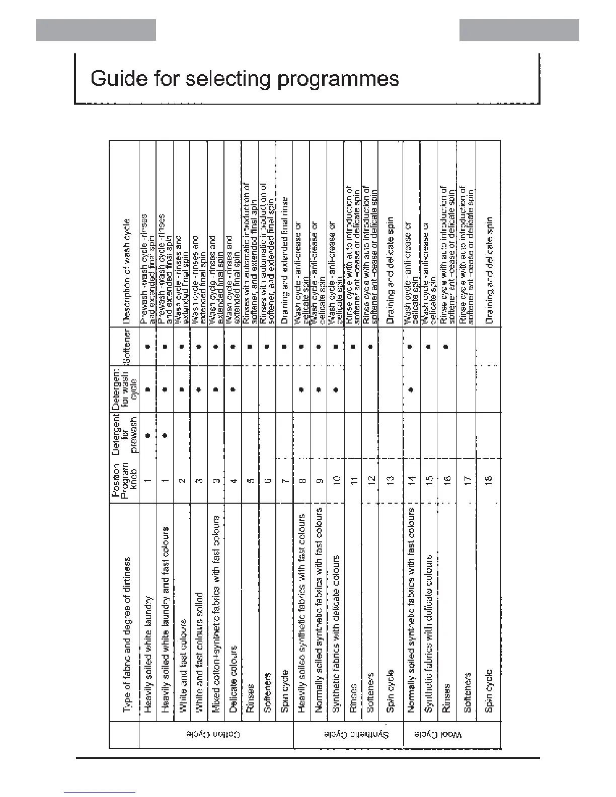 Teka TKX 1000 - Guide for selecting programmes