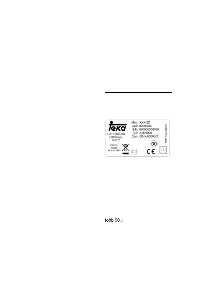 Elektromos jellemzők: LÁSD A TÍPUSCÍMKÉT!