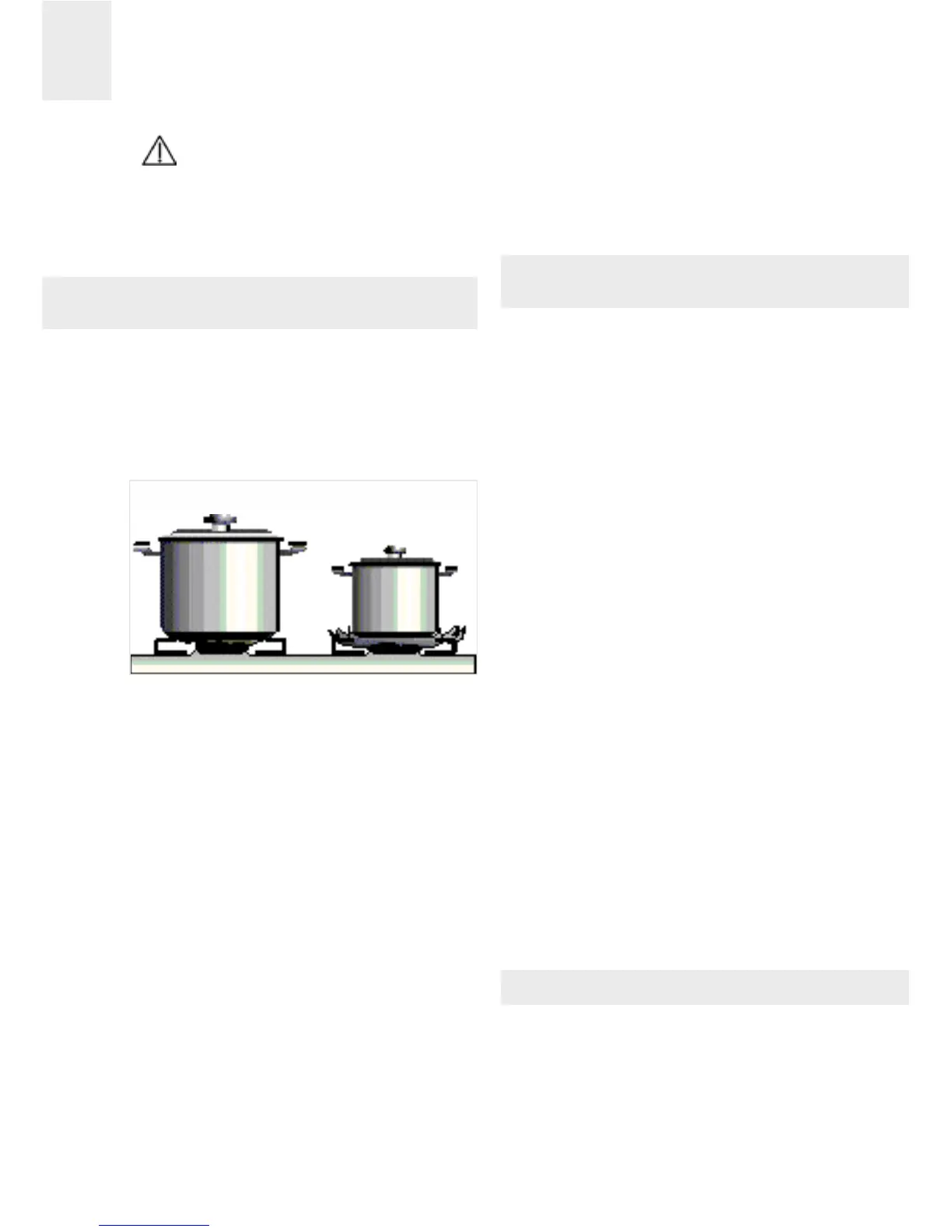 * Pans placed on the burners should not
