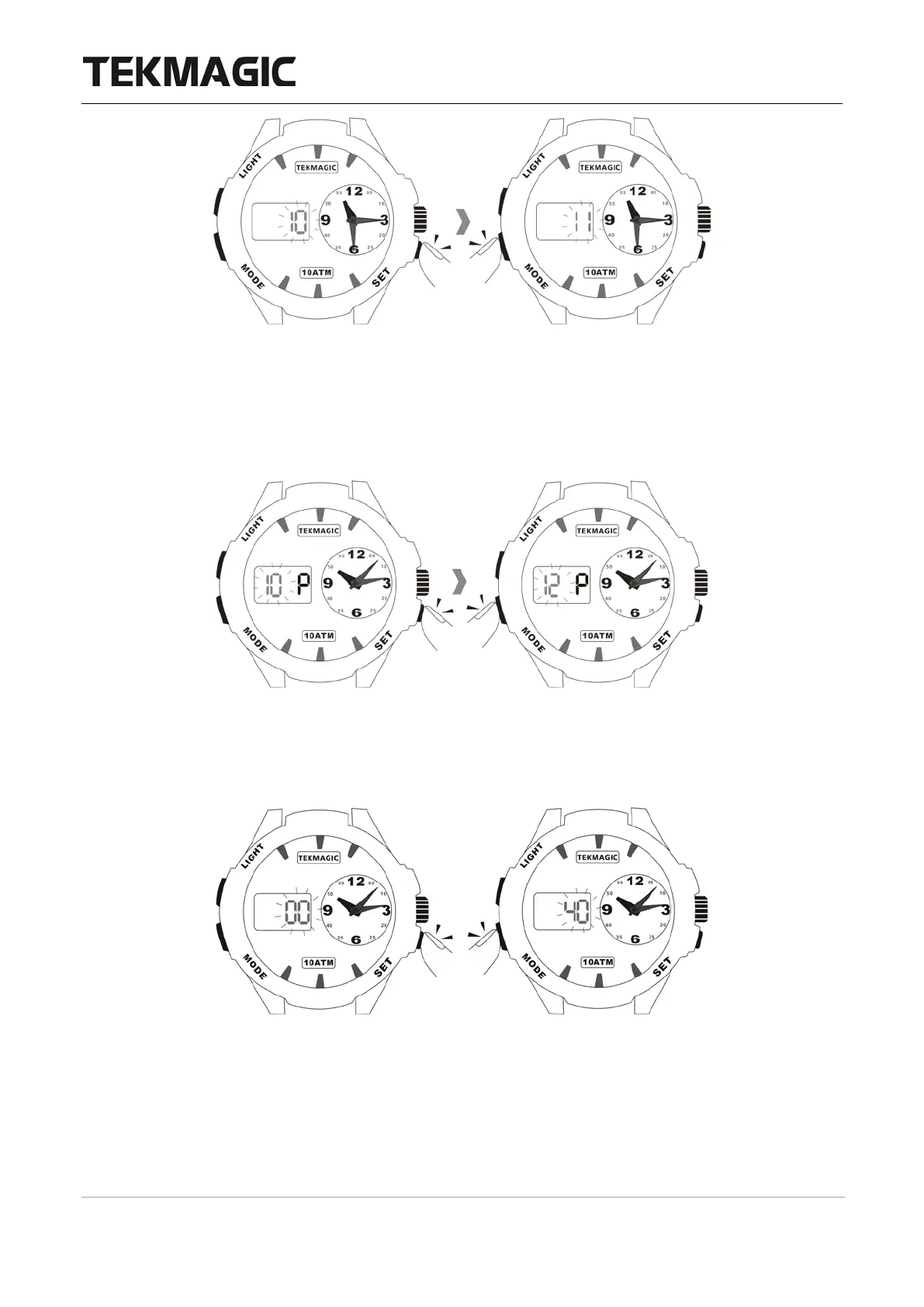 2.4 Drücken Sie die SET-Taste einmal. Sie sehen die Stundenziffer. Drücken Sie dann die