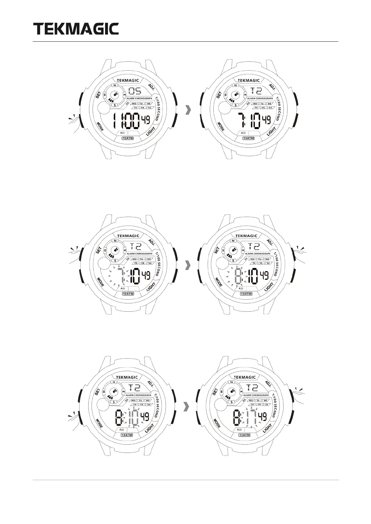 8.3 MODE ボタンを 1 回押すと、分桁が点滅し始め、ADJ ボタンを押して分を設定します。