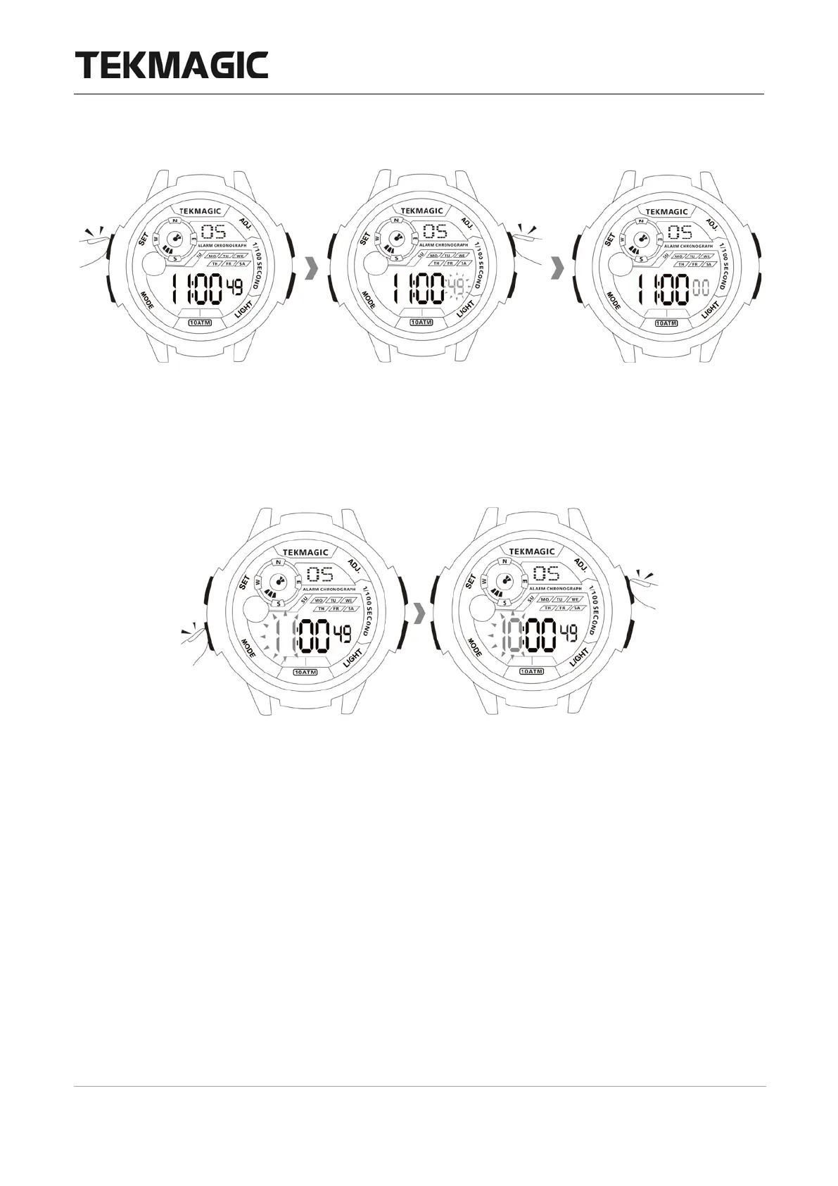 2.3 Press the MODE button once again, you will see the minute digit starts blinking, then