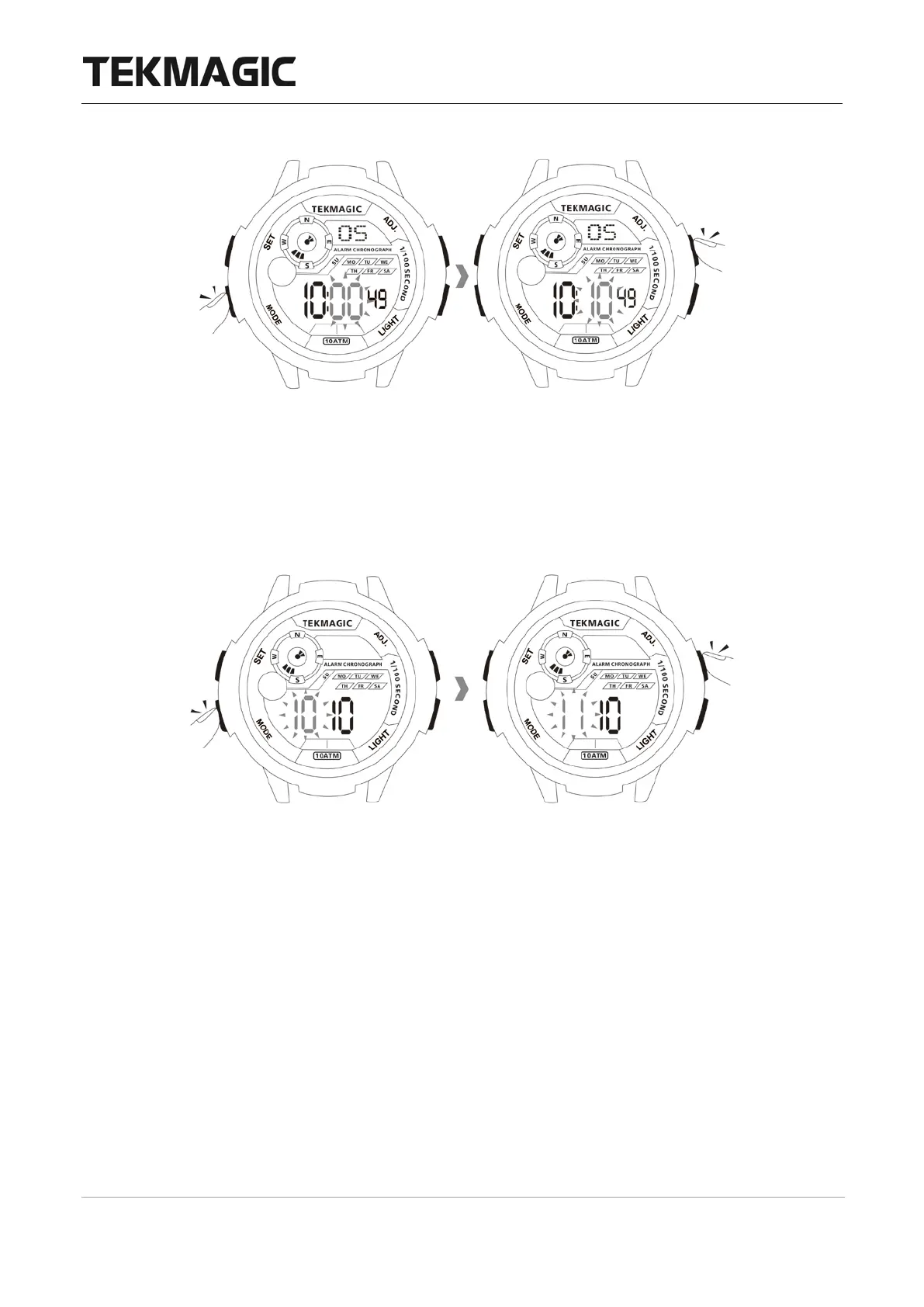 2.5 Press the MODE button once again, you will see the date digit starts blinking, then press