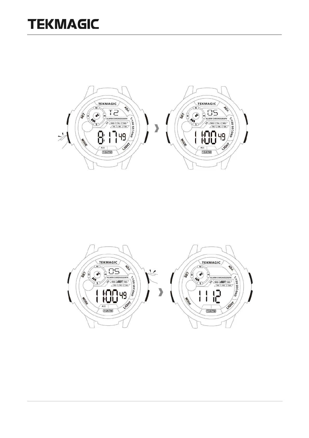 Halten Sie im lokalen Zeitanzeigemodus die ADJ-Taste gedrückt, um den Monat und das
