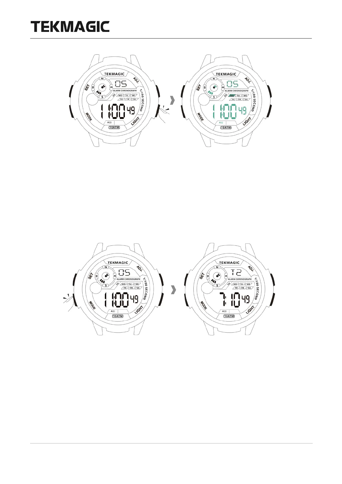 8.1 En el modo de visualización de la hora local, presione el botón MODE 4 veces para