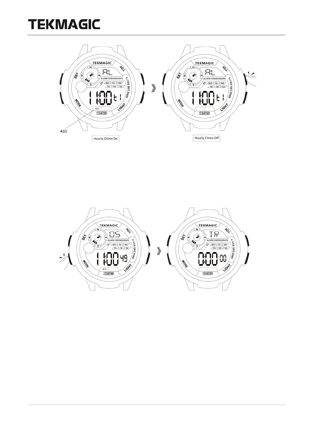 6.1 現地時間表示モードで、MODE ボタンを 3 回押して、タイマーカウントダウンモードに