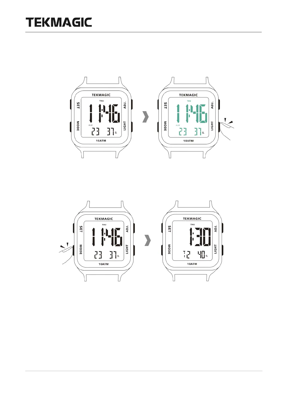 8.2 時間の数字が点滅するまで SET ボタンを押し続け、ADJ ボタンを押して時間を設定し