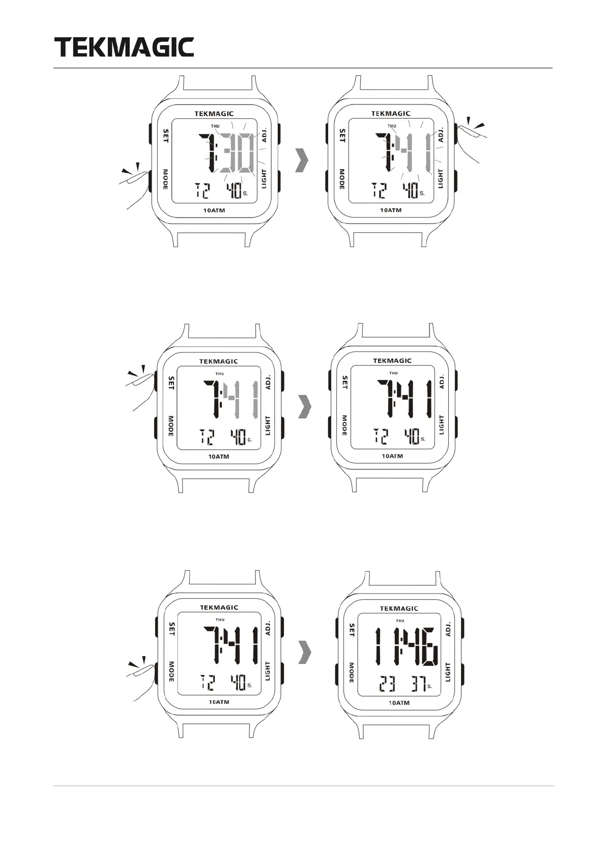 TEKMAGIC W22 - Set Other Time Zone Minute; Save Other Time Zone Settings; Exit Other Time Zone Mode