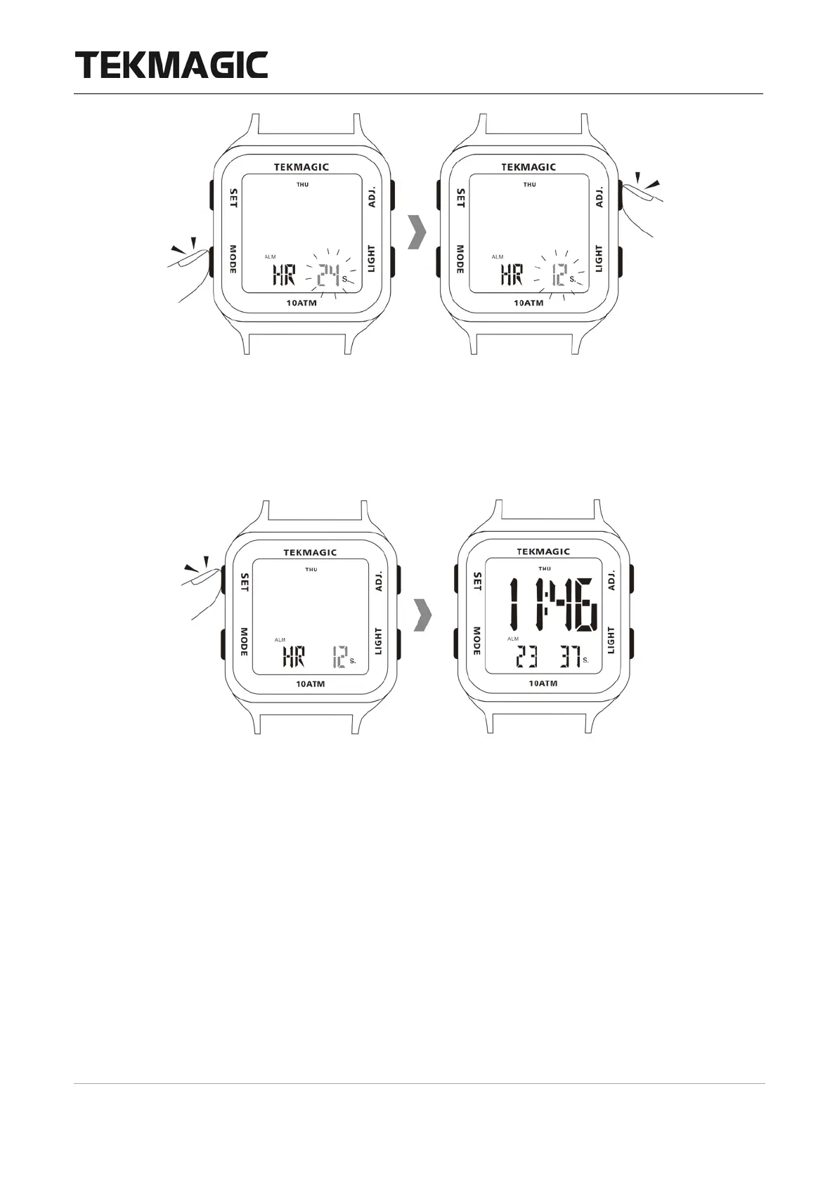 3.1 Drücken Sie im Ortszeit-Anzeigemodus einmal die MODE-Taste, um in den