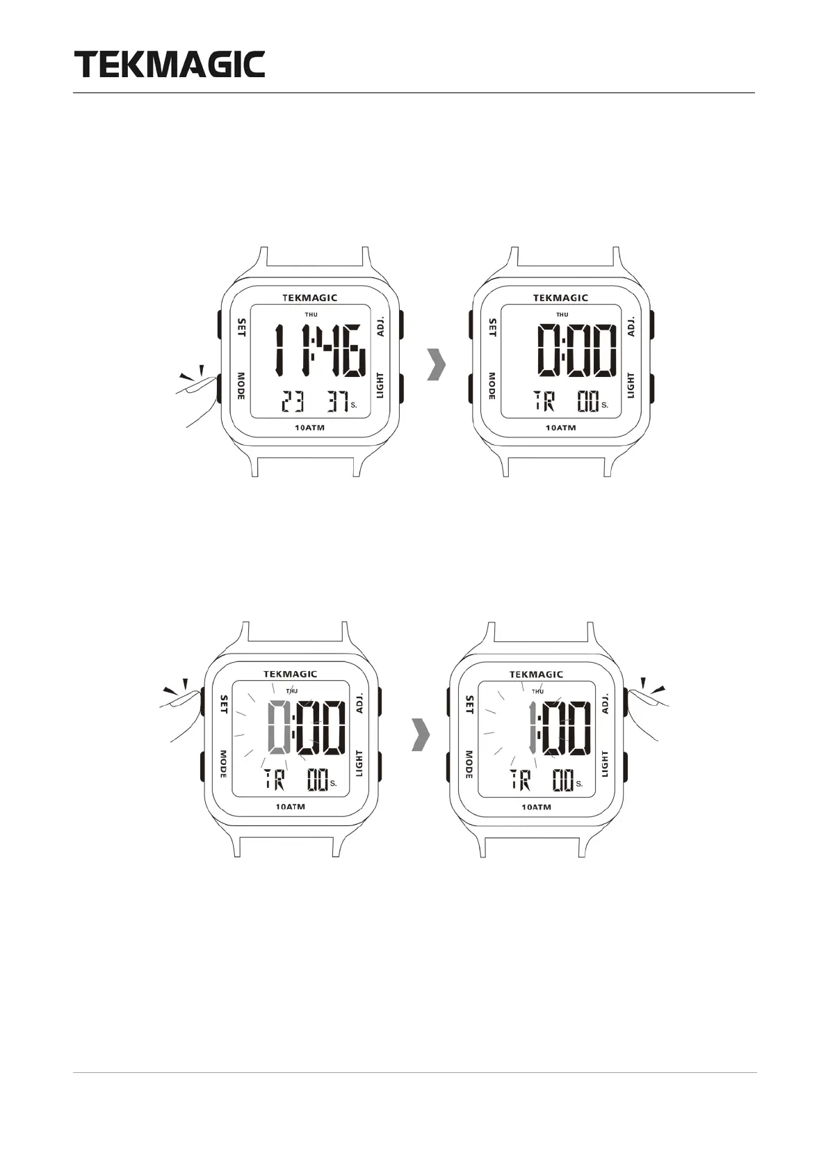 Sie dann die ADJ-Taste, um die Minuten einzustellen.