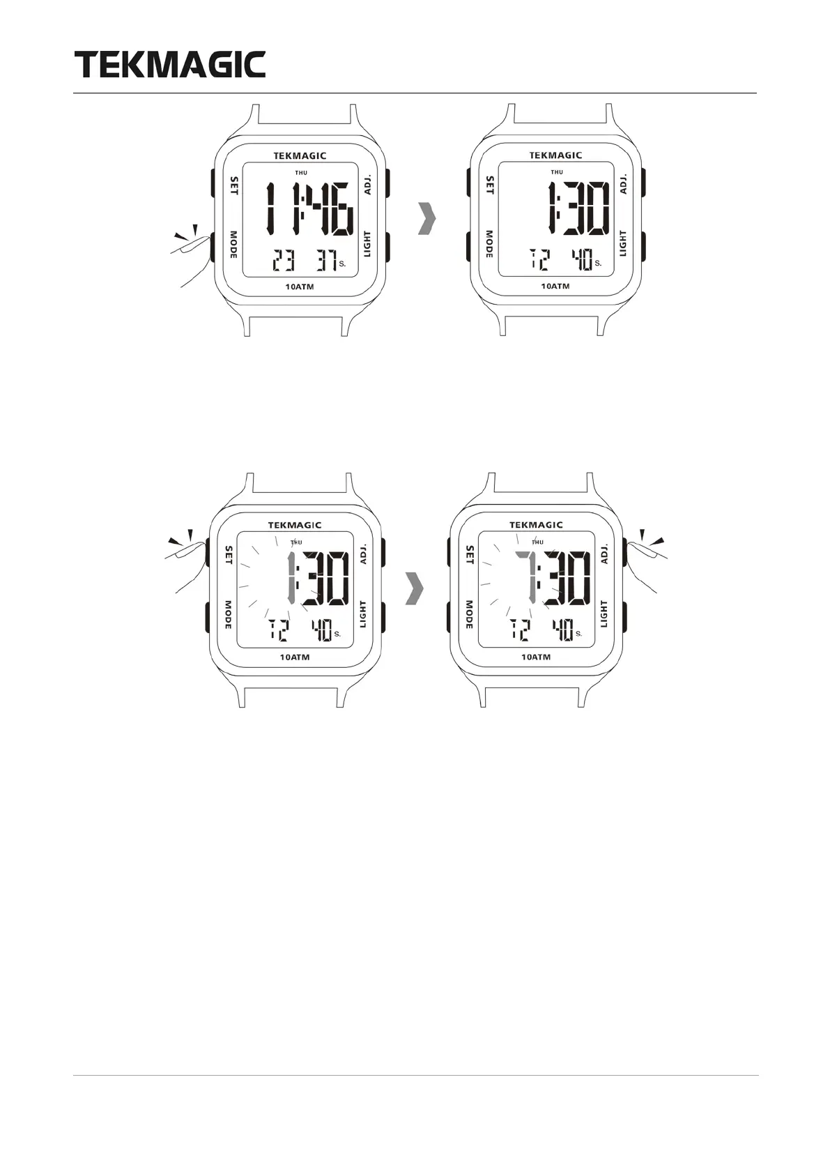 Sie dann die ADJ-Taste, um die Minuten einzustellen.