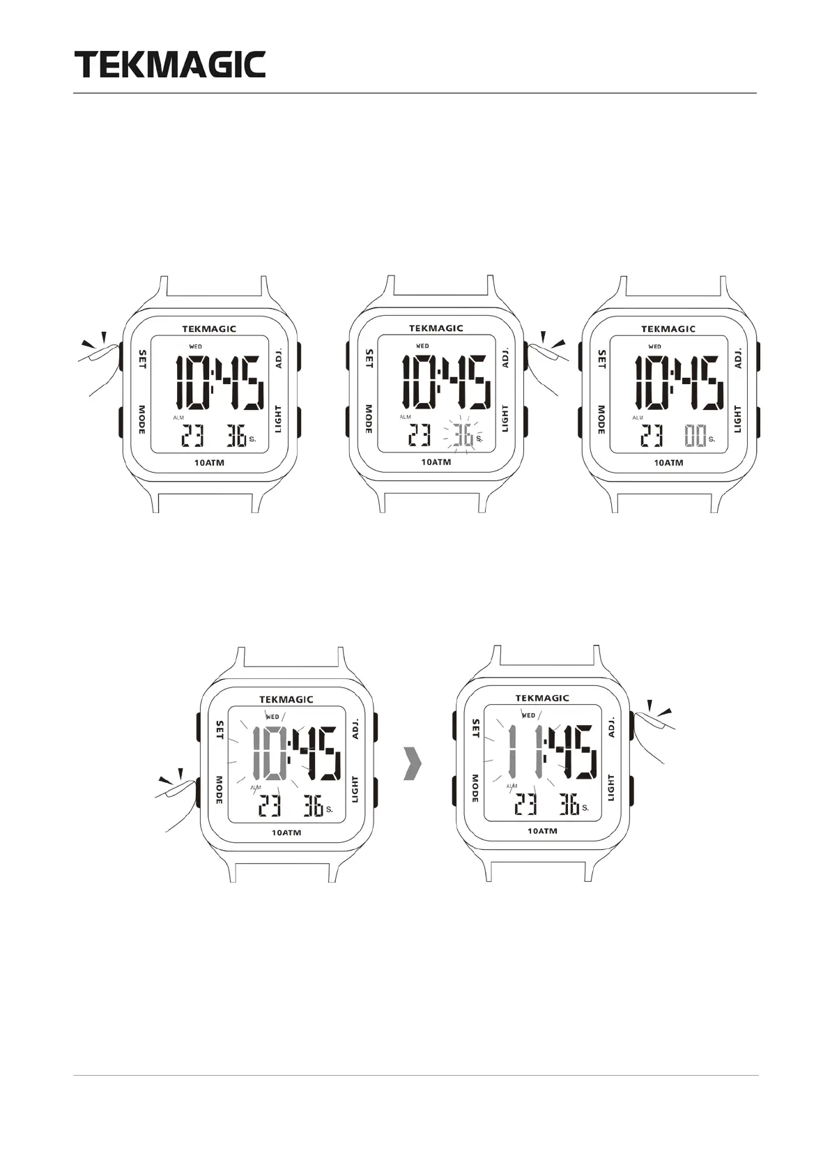 2.2 Appuyez une fois sur le bouton MODE, vous verrez le chiffre des heures commencer à