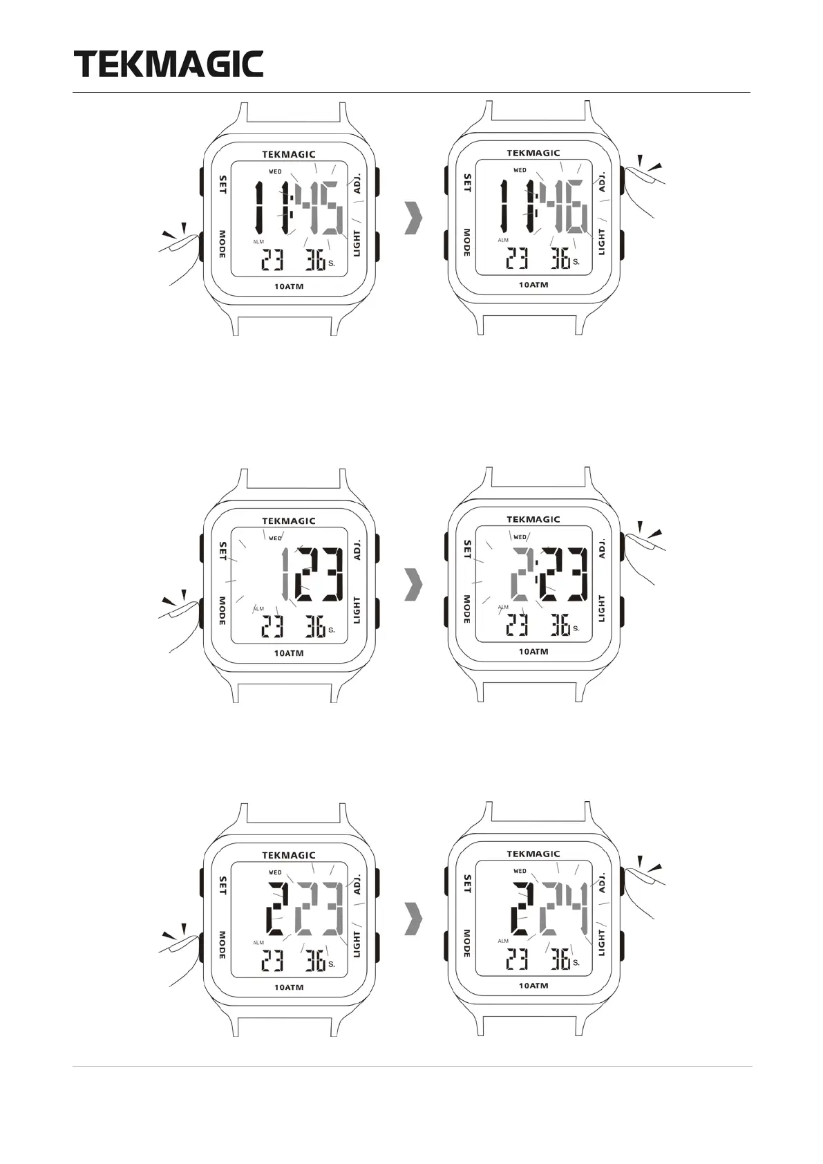2.5 Appuyez à nouveau sur le bouton MODE, vous verrez le chiffre de la date commencer à