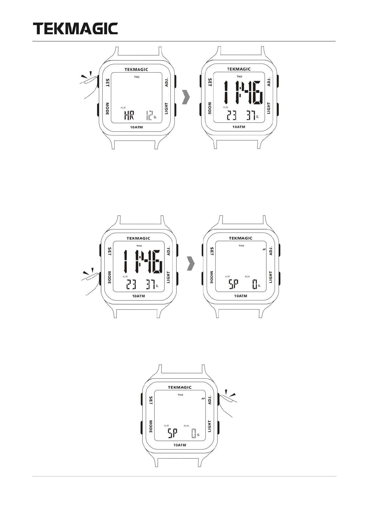 3.2 Appuyez sur le bouton ADJ pour démarrer le chronométrage.