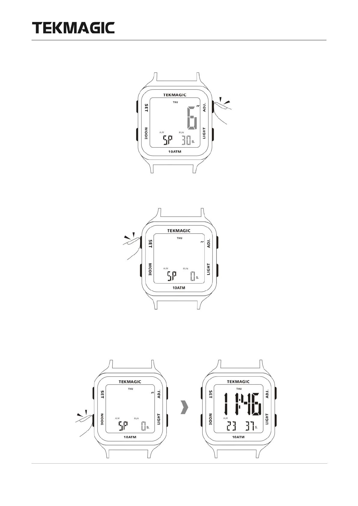 3.3 Appuyez à nouveau sur le bouton ADJ pour arrêter le chronométrage.