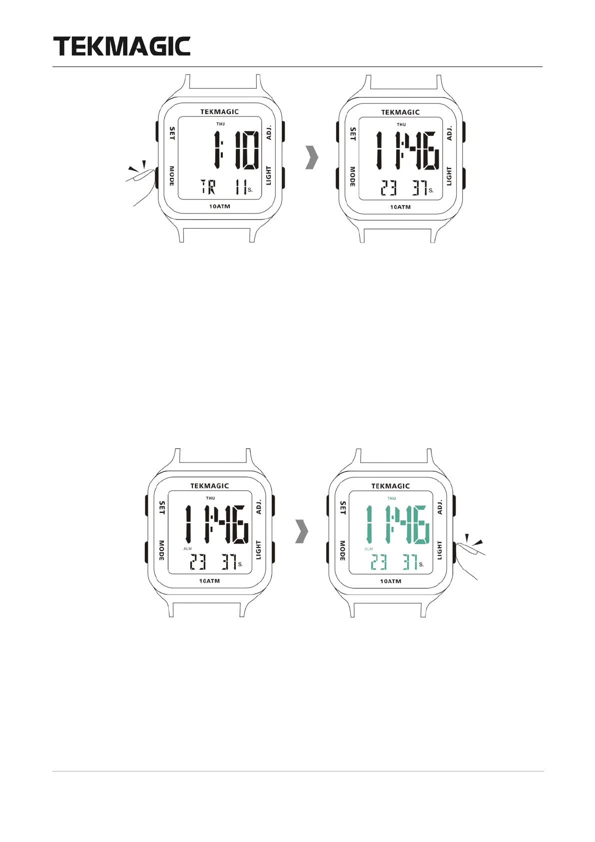 8.1 En el modo de visualización de la hora local, presione el botón MODE 4 veces para