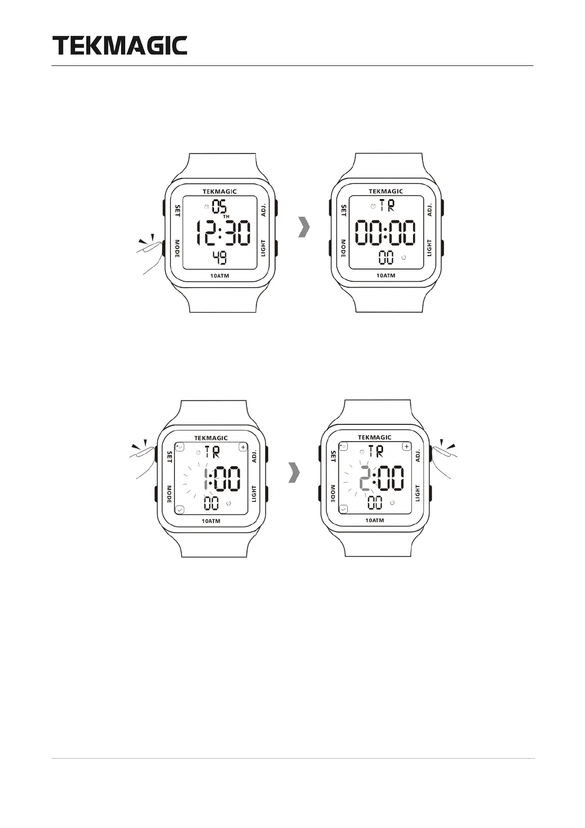 6.2 Hold down the SET button till you see the hour digit is blinking, then press the ADJ