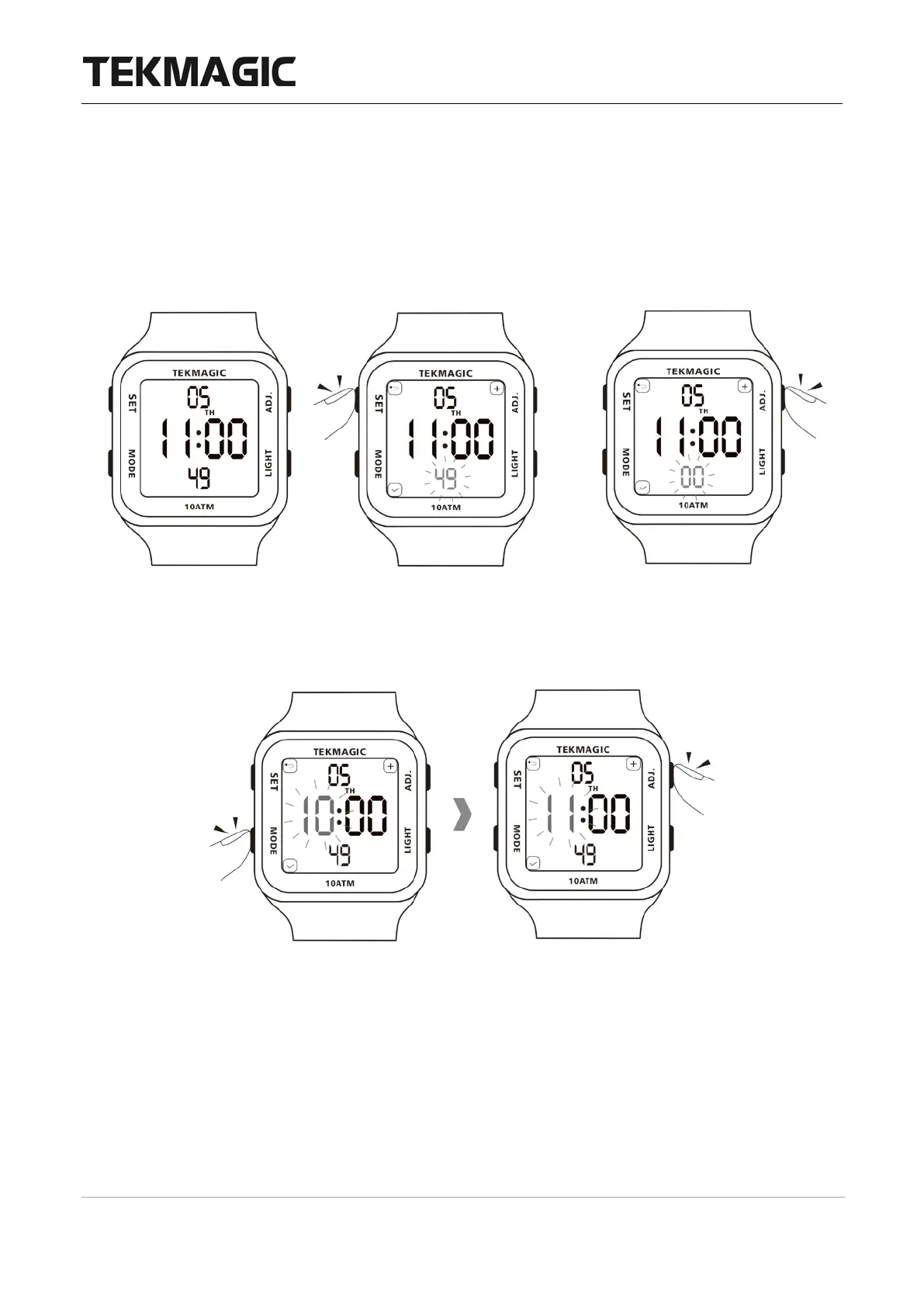 Sie anschließend die ADJ-Taste, um die Minuten einzustellen.