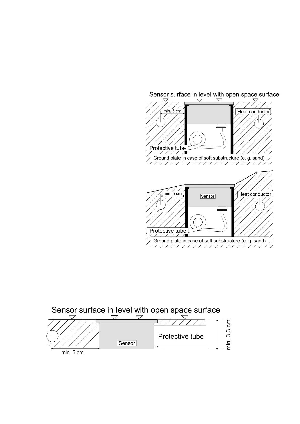 The sensor location must be chosen in such a way that the draining melt water runs onto the sensor's