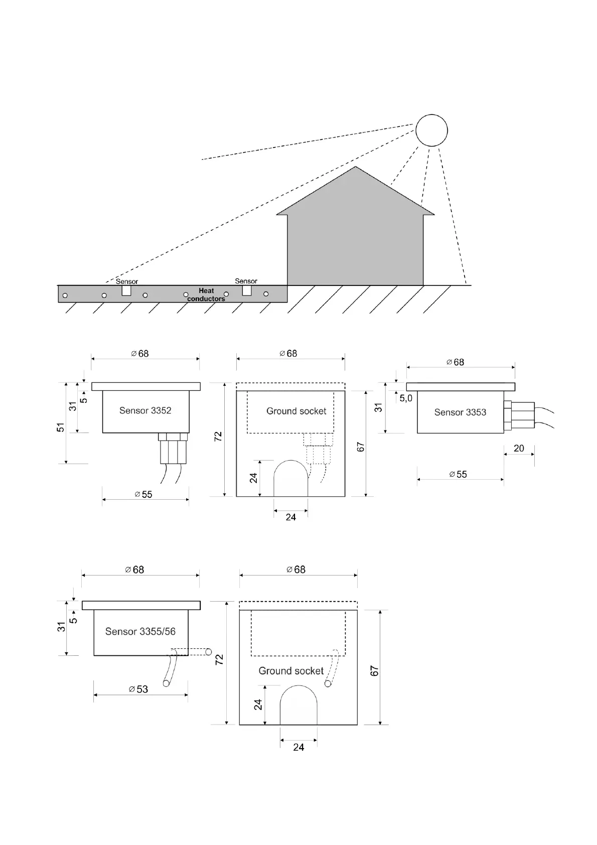 Dimensions: Type 3352 and 3353 sensors [mm]