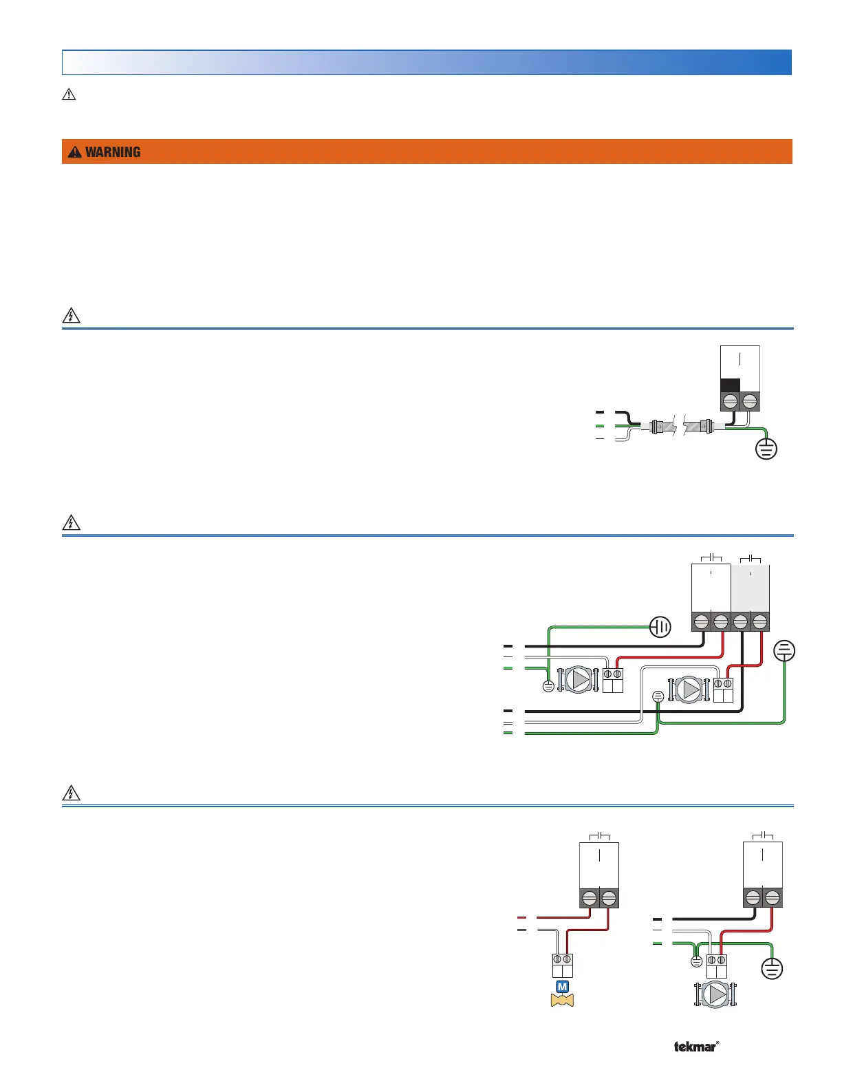 • For the Boiler 1 Pump / Valve connect the power source line wire (L) or low