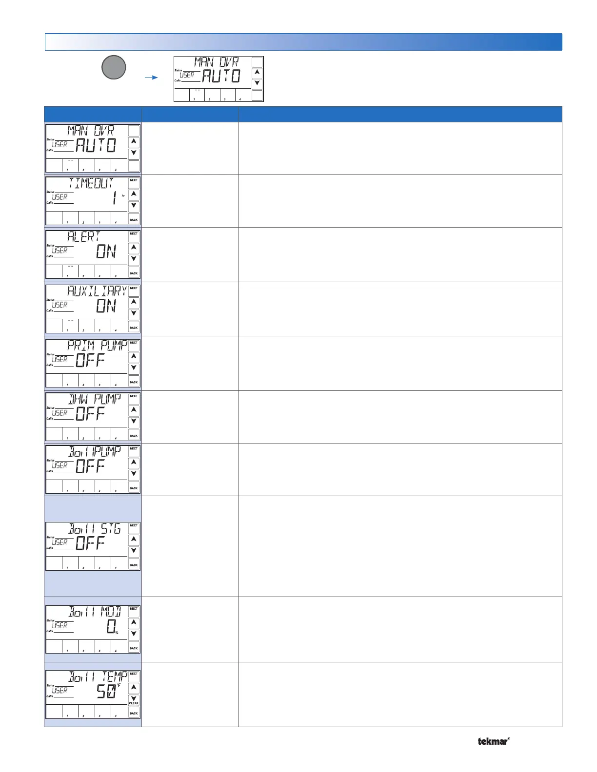 for each of the available temperature input boilers. If the boiler pump / valve is not