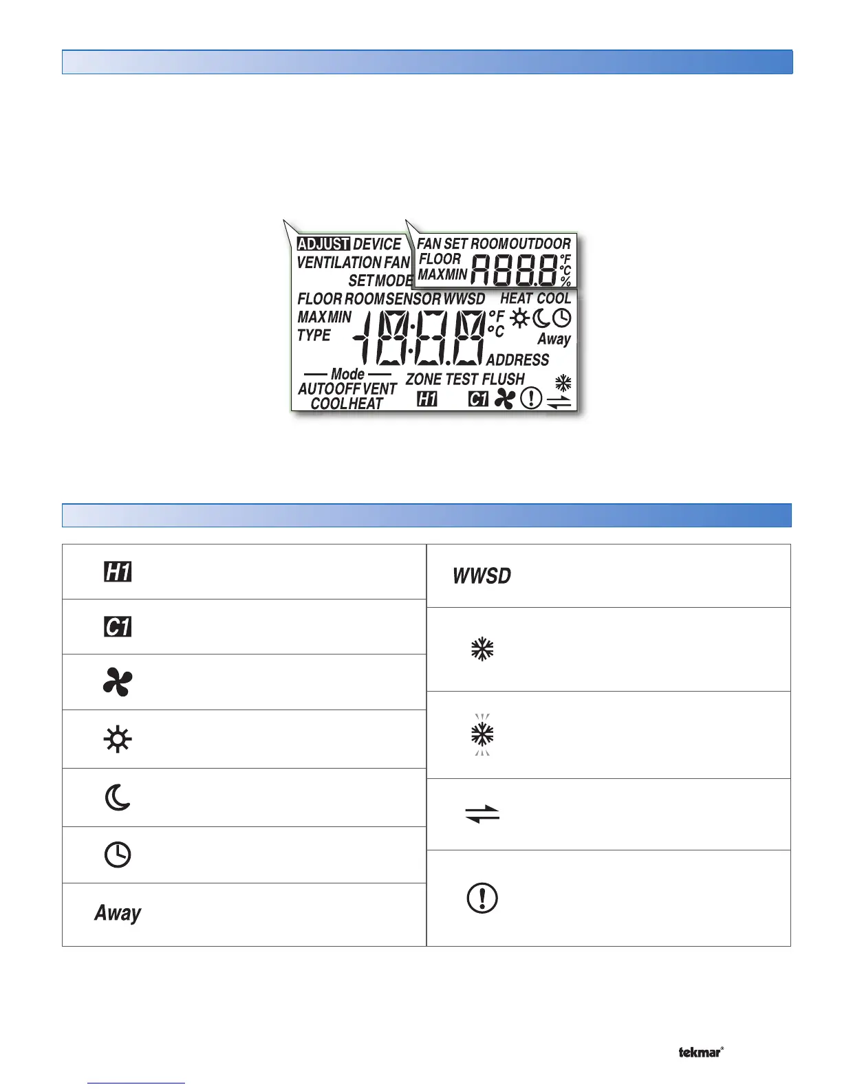 This display shows all potential symbols that may show up on your thermostat. They will be referred to throughout this manual,