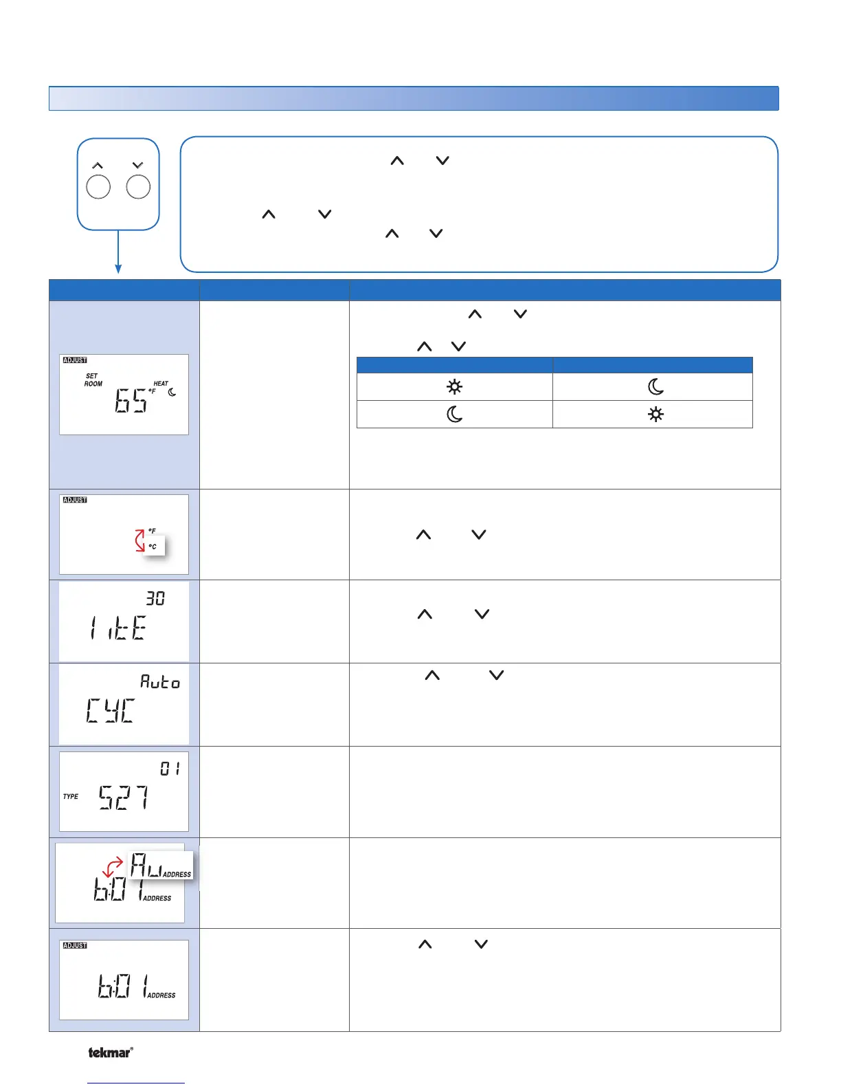 To change settings other than the current temperature, use the following steps:
