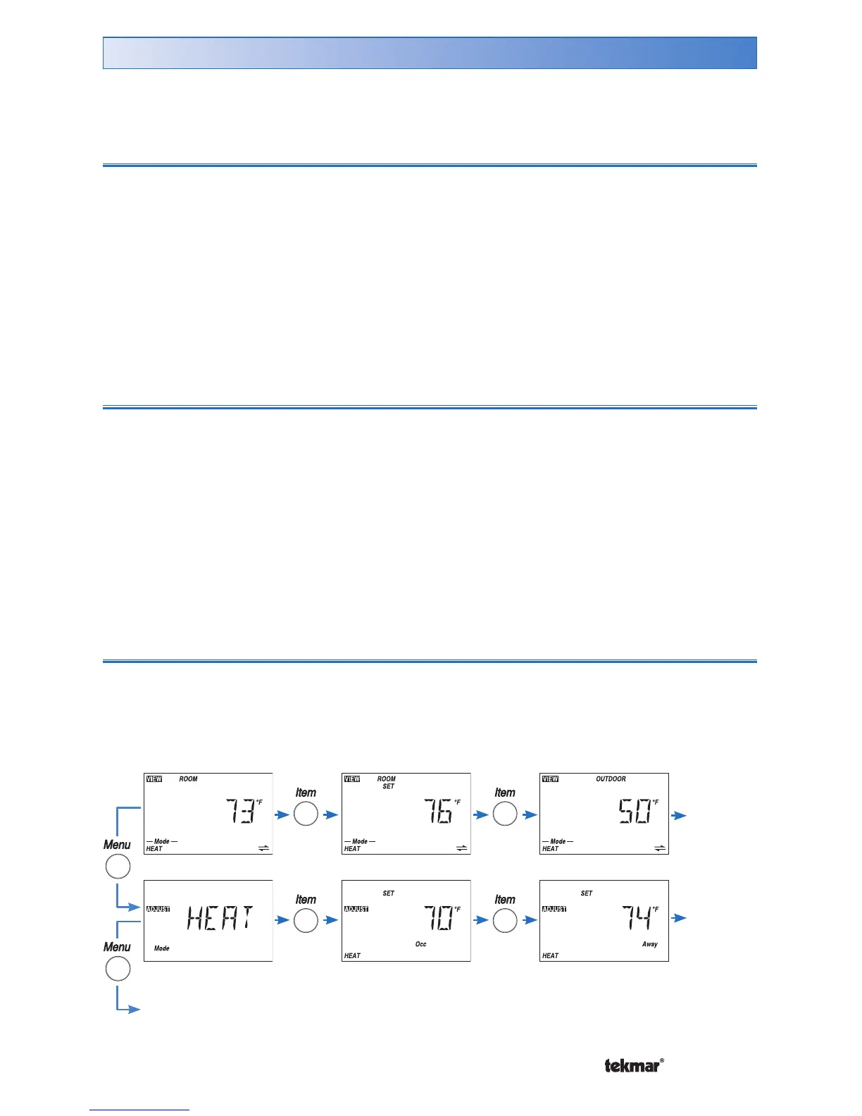 All of the items displayed by the thermostat are organized into five menus: