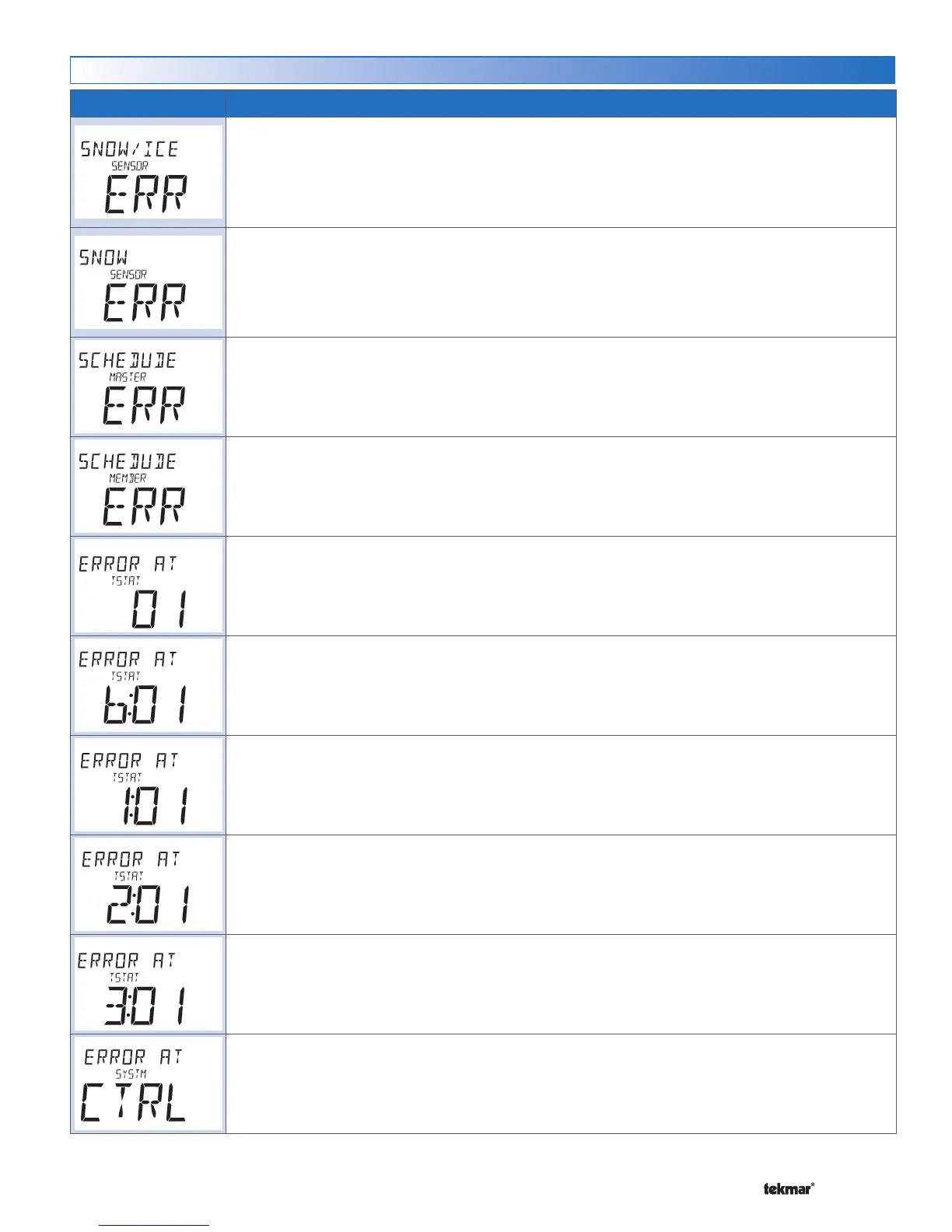 01 to 24 = There is an error on a thermostat or setpoint control with this tekmarNet