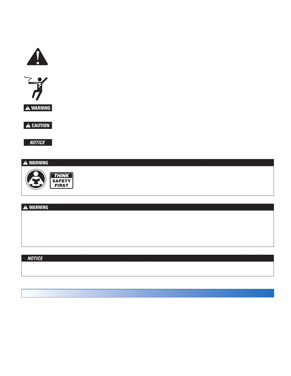 alone or with a signal word on your equipment or in this manual, be alert to the potential for death or serious