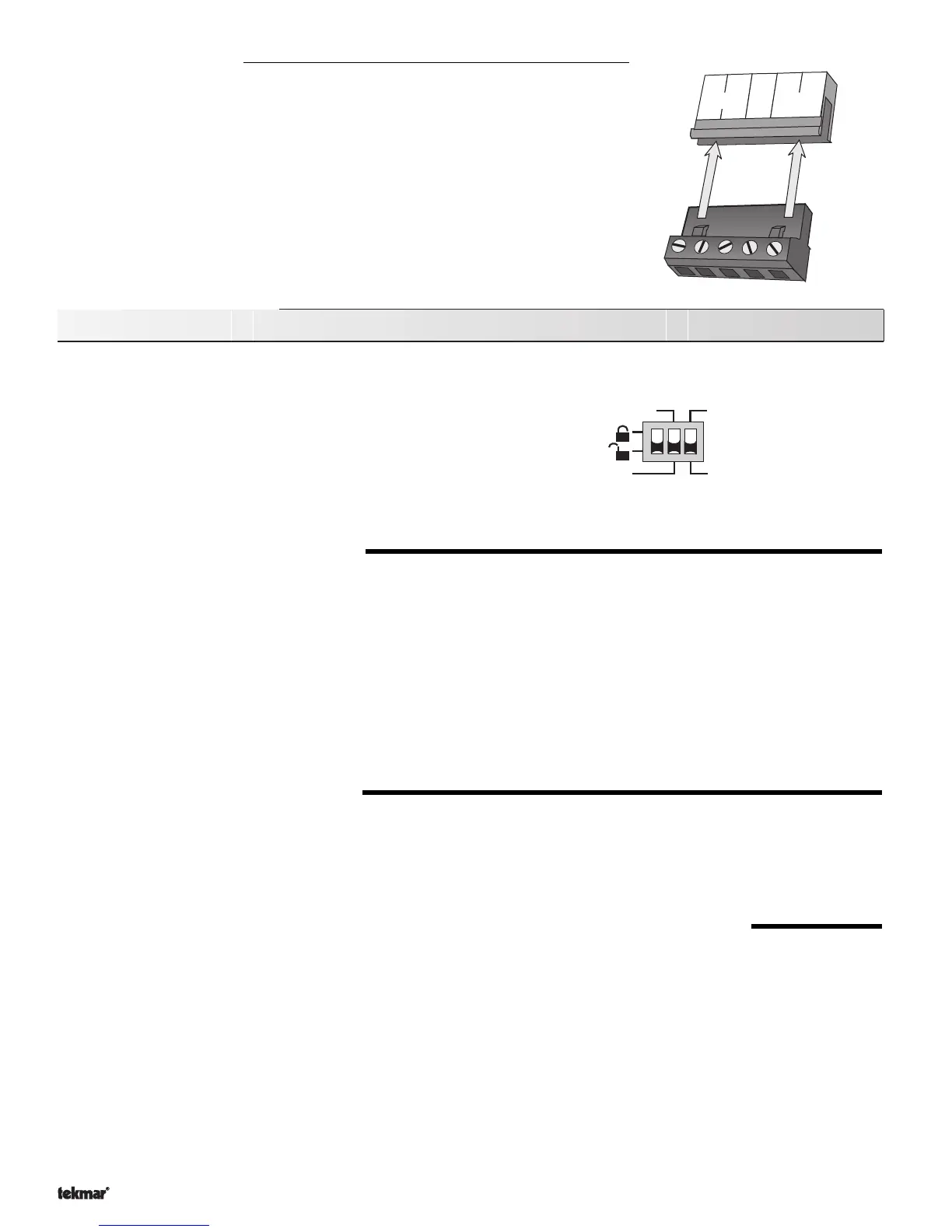 DIP switch is used to lock and unlock the access level of the control and tekmar Net