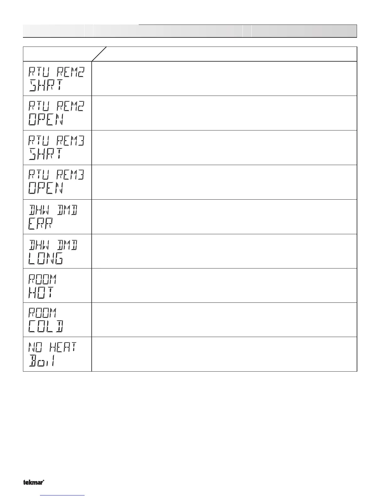 This warning message will be displayed if the boiler supply does not increase to the target temperature