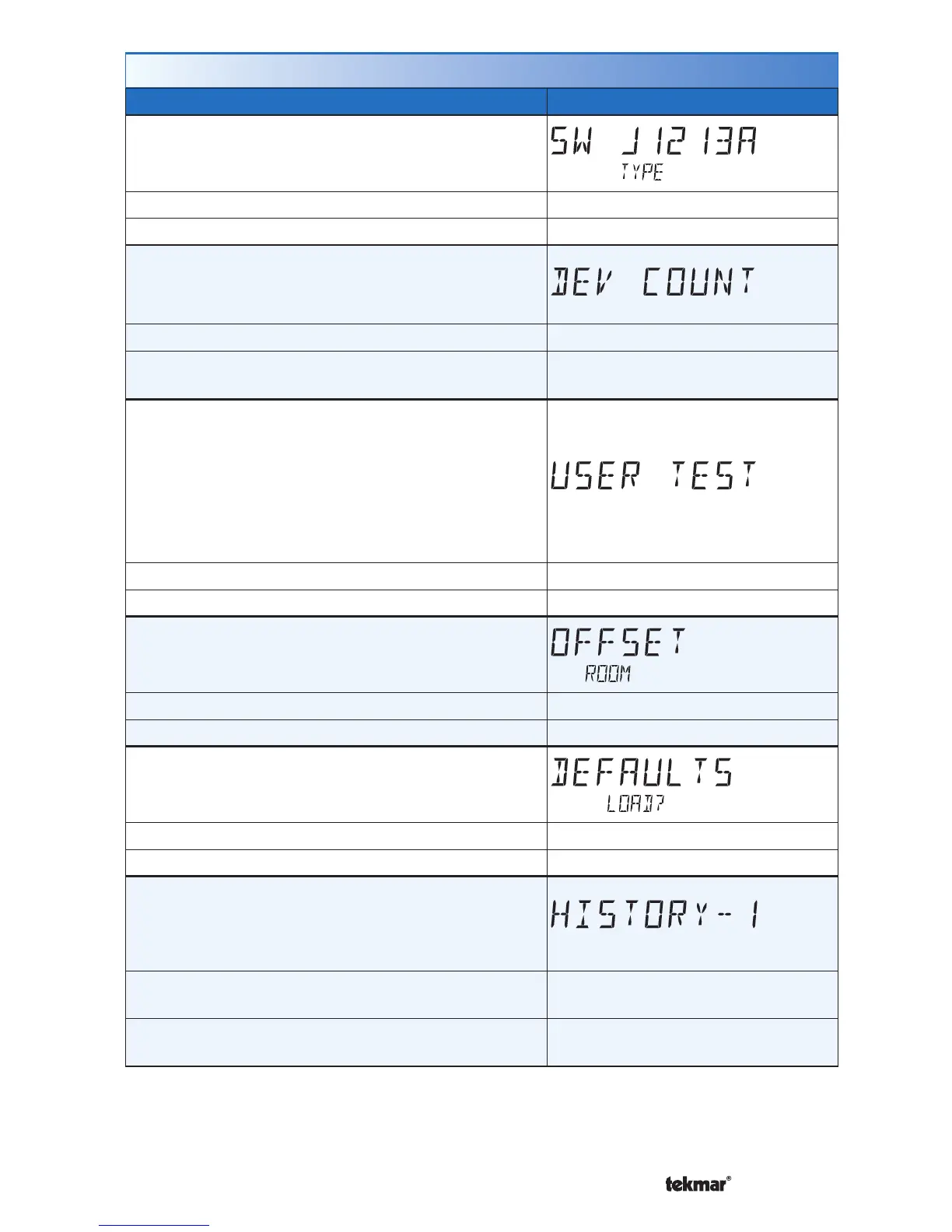 Displays the software version and the tekmar type